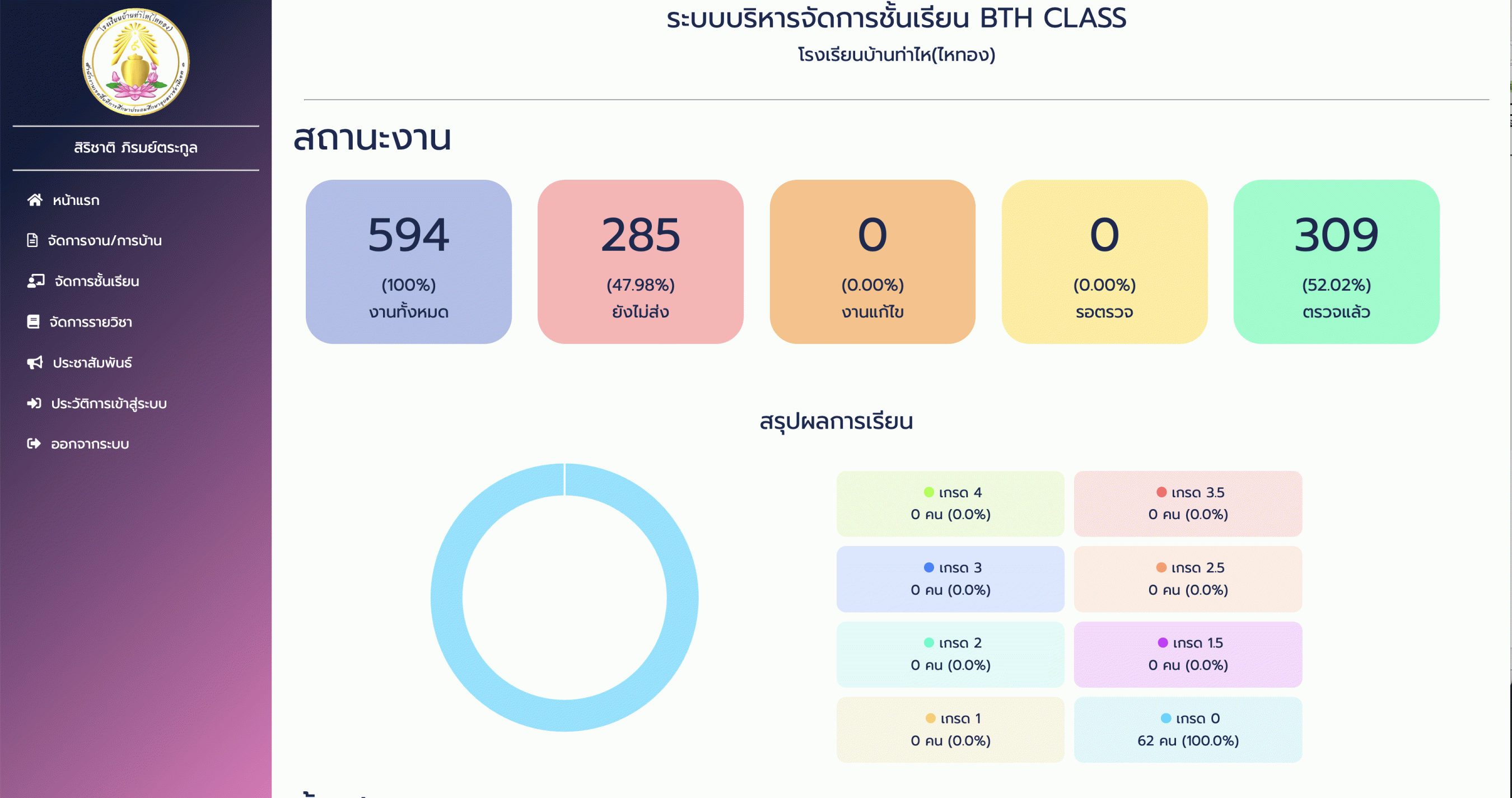 ผลลัพธ์ต่อครู : ครูสามารถติดตามพฤติกรรมการเรียนรู้ของนักเรียนรายบุคคลได้อย่างใกล้ชิดผ่านระบบวิเคราะห์ข้อมูล ลดภาระการจัดเก็บและตรวจแบบฝึกหัด เนื่องจากระบบสามารถบันทึกคะแนน ตรวจคำตอบอัตโนมัติ และจัดทำรายงาน
