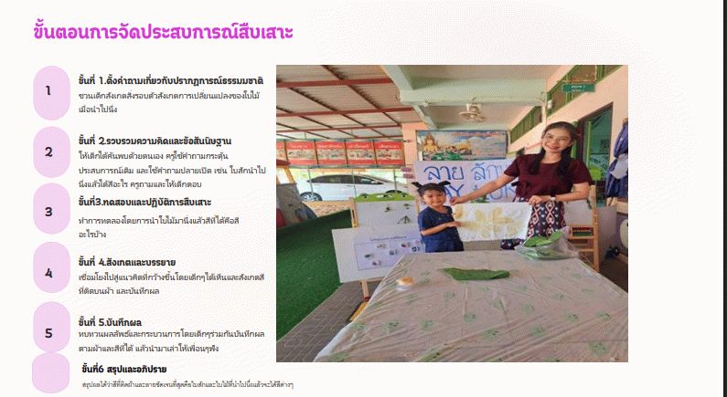 ผลลัพธ์ต่อนักเรียนการจัดประสบการณ์เรียนรู้แบบสืบเสาะช่วยให้เด็กมีความคิดวิเคราะห์แก้ปัญหาและเรียนรู้จากการลงมือทำจริงนำไปสู่การพัฒนาอย่างยั่งยืน