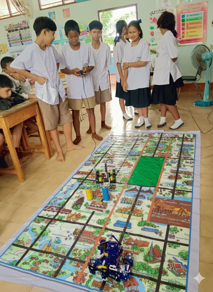 ผลลัพธ์ต่อนักเรียน1. สมรรถนะทางเทคโนโลยี มีทักษะพื้นฐานด้าน Coding และการประกอบหุ่นยนต์ เข้าใจการใช้เทคโนโลยีเพื่อแก้ปัญหาในชีวิตจริง 2. ทักษะการคิดวิเคราะห์และแก้ปัญหา นักเรียนสามารถวางแผน ทดลอง และปรับปรุงผลงานตามปัญหาที่พบ มีทักษะในการสื่อสารแนวคิดและนำเสนอผลงาน 3. ทักษะการทำงานร่วมกัน (Collaboration) ทำงานเป็นทีม มีบทบาทชัดเจนในการแบ่งหน้าที่ ฝึกความรับผิดชอบและการประสานงานในกลุ่ม 4. ความภูมิใจในท้องถิ่น (Local Pride) ได้เรียนรู้ประวัติศาสตร์และแหล่งท่องเที่ยวในบ้านเกิด มีแรงบันดาลใจในการอนุรักษ์และเผยแพร่วัฒนธรรมท้องถิ่น