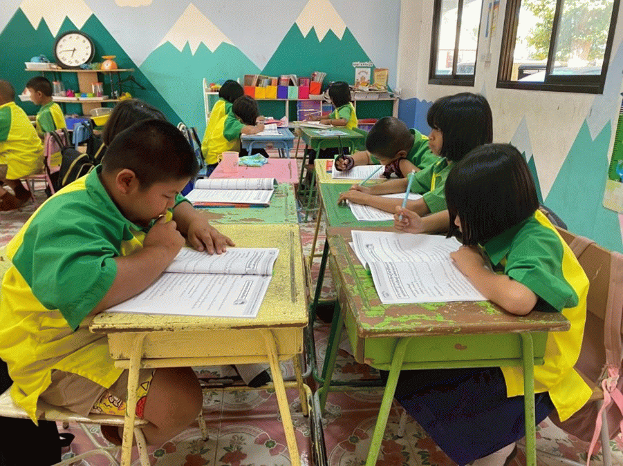 ผลลัพธ์ต่อชุมชน : ภายหลังการดำเนินการพัฒนาทักษะการเขียนเรื่องจากภาพโดยใช้แบบฝึกทักษะด้วยเทคนิคคำถาม ๕W ๑H พบว่าเกิดประโยชน์ต่อชุมชนอย่างเป็นรูปธรรม กล่าวคือ นักเรียนมีความสามารถในการคิดอย่างเป็นระบบ สามารถสื่อสารเรื่องราวต่าง ๆ ได้อย่างชัดเจน เป็นลำดับขั้น ส่งผลให้การสื่อสารระหว่างโรงเรียน ครอบครัว และชุมชนมีประสิทธิภาพมากยิ่งขึ้นนักเรียนสามารถถ่ายทอดเหตุการณ์ เรื่องราว หรือข้อมูลเกี่ยวกับชุมชนของตนเองได้อย่างถูกต้อง ส่งเสริมการอนุรักษ์วัฒนธรรมท้องถิ่น และสร้างความภาคภูมิใจใน อัตลักษณ์ของชุมชน อีกทั้งยังช่วยพัฒนาทักษะการคิดวิเคราะห์และการตั้งคำถาม ซึ่งเป็นพื้นฐานสำคัญของการเรียนรู้ตลอดชีวิต ทำให้นักเรียนเติบโตเป็นสมาชิกที่มีคุณภาพของสังคม