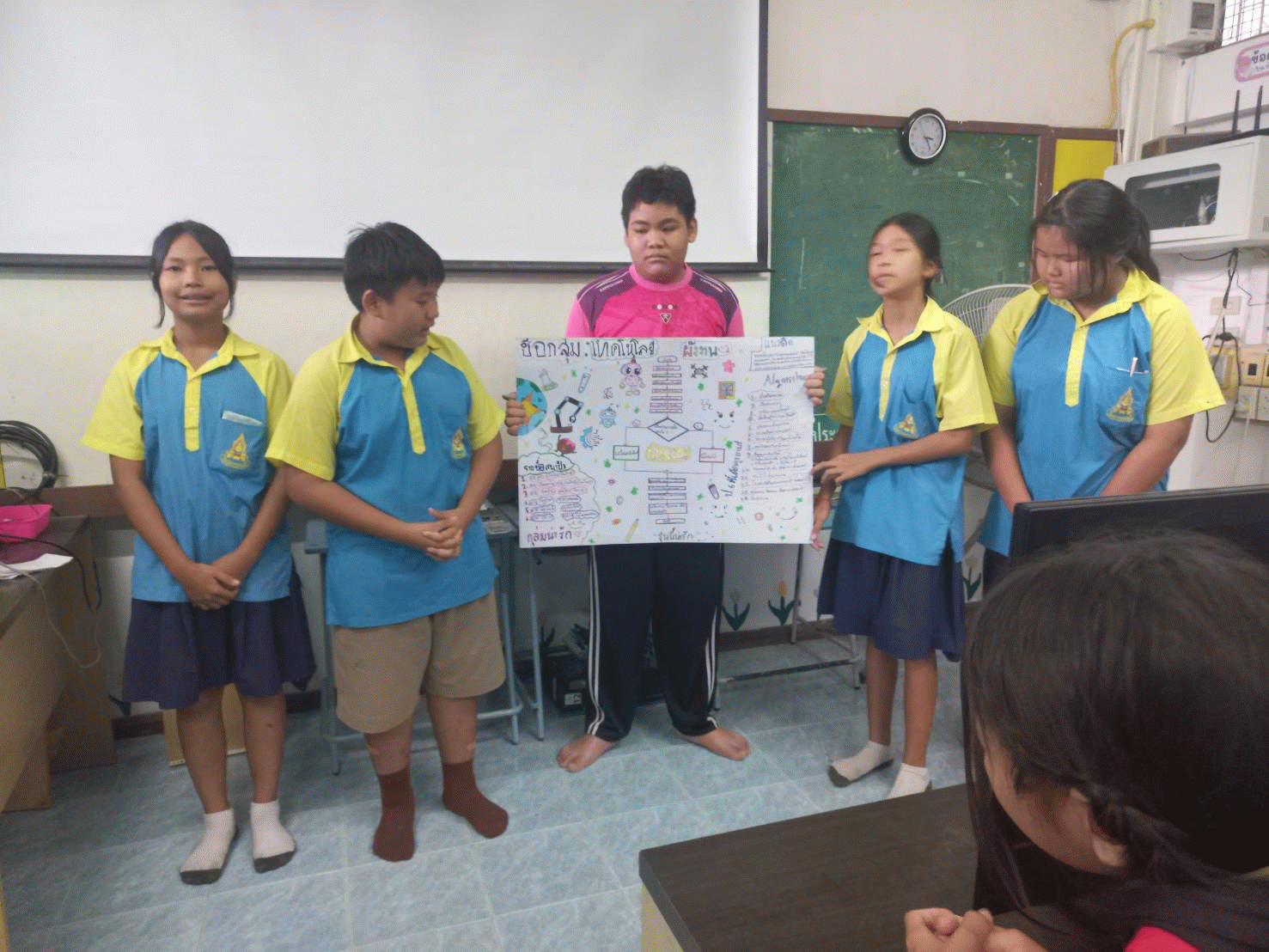 ผลลัพธ์ต่อครู : ครูสามารถพัฒนารูปแบบการจัดการเรียนรู้เชิงรุก (Active Learning) ที่บูรณาการเทคโนโลยีและอัตลักษณ์ท้องถิ่นเข้ากับรายวิชาวิทยาการคำนวณได้อย่างมีประสิทธิภาพ ครูมีทักษะในการออกแบบกิจกรรมการเรียนรู้และเครื่องมือวัดผลประเมินผลที่หลากหลาย เช่น ใบงานและรูบริกประเมิน เพื่อประเมินสมรรถนะของผู้เรียนได้อย่างเป็นระบบ ครูเกิดการพัฒนาตนเองด้านการสร้างนวัตกรรมทางการศึกษา และสามารถนำรูปแบบการจัดการเรียนรู้นี้ไปปรับใช้กับรายวิชาและระดับชั้นอื่นได้ ครูมีการแลกเปลี่ยนเรียนรู้ภายในชุมชนแห่งการเรียนรู้ทางวิชาชีพ (PLC) ส่งผลให้เกิดการพัฒนาการจัดการเรียนการสอนอย่างต่อเนื่อง