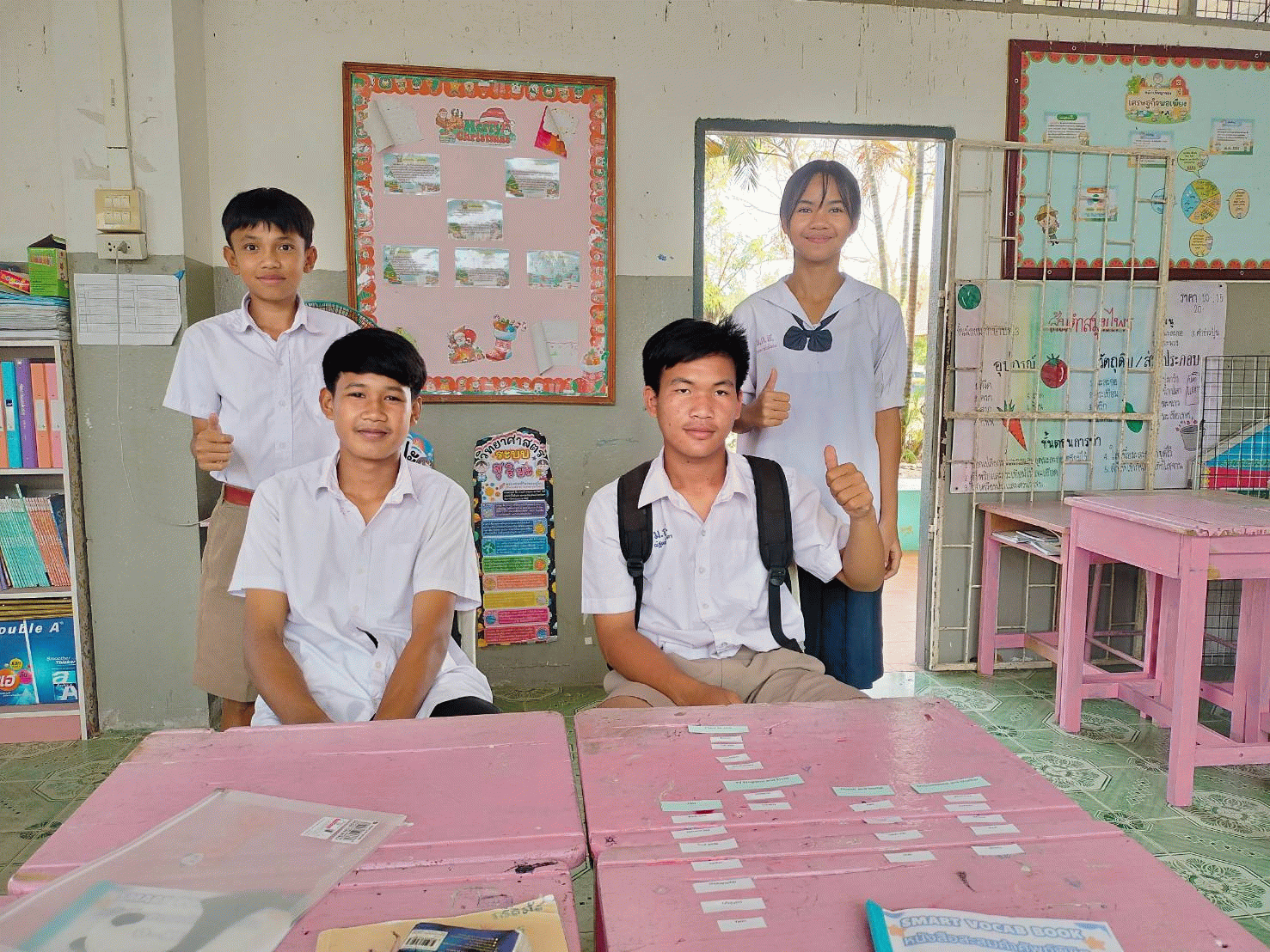 ผลลัพธ์ต่อนักเรียนผลการพัฒนาเชิงปริมาณ ๑) ผู้เรียนจากทั้งหมด ๑๗ คน มีจำนวน ๑๓ คน ที่ทักษะการจดจำคำศัพท์ อยู่ในระดับดี สังเกตได้จาก การบอกความหมาย การอ่านคำศัพท์ การพูดประโยค การทำแบบทดสอบ คิดเป็นร้อยละ ๗๖.๔๗ ซึ่งสูงกว่าเป้าหมายที่กำหนดคือร้อยละ ๗๐ ๒) ผู้เรียนจากทั้งหมด ๑๗ คน มีจำนวนนักเรียน ๑๕ คน ที่มีทักษะการจดจำคำศัพท์ ระดับดี สังเกตได้จากการบอกความหมาย การจับกลุ่ม การเรียงตัวอักษรคำศัพท์ คิดเป็นร้อยละ ๘๘.๒๓ ซึ่งสูงกว่าเป้าหมายที่กำหนดคือร้อยละ ๗๐ ๓) ผู้เรียนจากทั้งหมด ๑๗ คน มีจำนวน ๑๖ คน ที่มีเจตคติอยู่ในระดับมาก สังเกตได้จาก นักเรียนมีความสนใจใฝ่เรียนรู้ มีความสนุกสนาน มีปฏิสัมพันธ์ที่ดีในการทำงาน มีความสุขในการเรียนรู้ คิดเป็นร้อยละ ๙๔.๑๑ ซึ่งสูงกว่าเป้าหมายที่กำหนดคือร้อยละ ๘๐