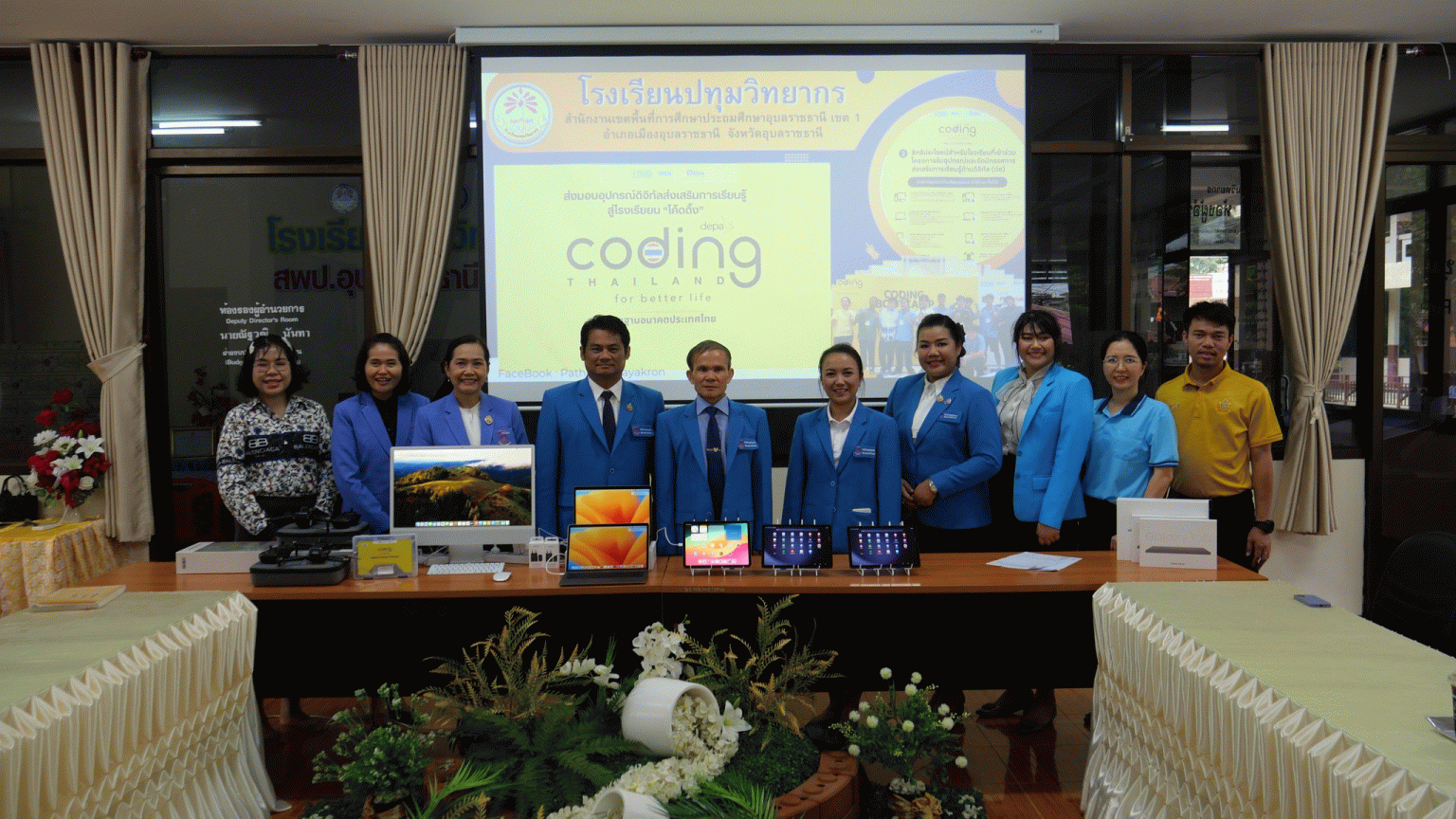 ผลลัพธ์ต่อชุมชน : ผลที่เกิดกับชุมชน1. สร้างความร่วมมือระหว่างโรงเรียนกับชุมชน ชุมชนมีโอกาสเข้ามามีส่วนร่วมในกระบวนการจัดการศึกษา เช่น การเป็นวิทยากรท้องถิ่น การมีส่วนร่วมในกิจกรรมโรงเรียน หรือร่วมเป็นคณะกรรมการสถานศึกษา เกิด “พหุปัญญา” โดยการใช้ภูมิปัญญาท้องถิ่นควบคู่กับความรู้สมัยใหม่ 2. ยกระดับคุณภาพชีวิตและการเรียนรู้ของคนในชุมชน โรงเรียนเป็นแหล่งเรียนรู้ตลอดชีวิต (Lifelong Learning Center) จัดอบรมหรือเวิร์กช็อปให้กับประชาชนในเรื่องต่าง ๆ เช่น ทักษะอาชีพ, การใช้เทคโนโลยี, สุขภาพ, การเลี้ยงดูบุตร เป็นต้น 3. จุดประกายและสร้างนวัตกรรมร่วมกัน ชุมชนมีบทบาทในการพัฒนานวัตกรรมที่สอดคล้องกับบริบทของท้องถิ่น เช่น โครงการเรียนรู้จากปัญหาจริงในชุมชน (Problem-Based Learning) ส่งเสริมการคิดสร้างสรรค์ร่วมกันระหว่างนักเรียน ครู และชาวบ้าน 4. สร้างความยั่งยืนและความภาคภูมิใจในท้องถิ่น เด็กและเยาวชนตระหนักในคุณค่าของชุมชน รู้จักรากเหง้าและพร้อมพัฒนาอย่างยั่งยืน เกิด “โรงเรียนเป็นศูนย์กลางของชุมชน” ซึ่งประชาชนสามารถเข้าถึงทรัพยากรและความรู้ได้ตลอดเวลา 5. การพัฒนาชุมชนอย่างมีระบบและวัดผลได้ โรงเรียนทำงานร่วมกับองค์กรปกครองส่วนท้องถิ่น เช่น เทศบาลนครอุบล ในการพัฒนาแผนงานหรือโครงการ การใช้ข้อมูลเชิงประจักษ์ (Data-Driven) ทำให้ชุมชนมีส่วนร่วมในการตัดสินใจบนพื้นฐานข้อมูลจริง