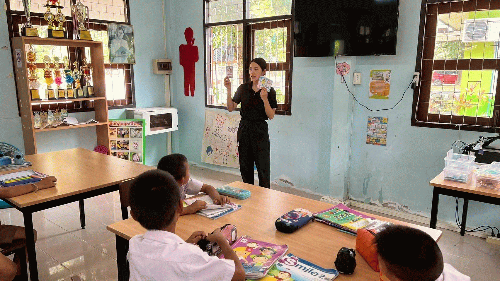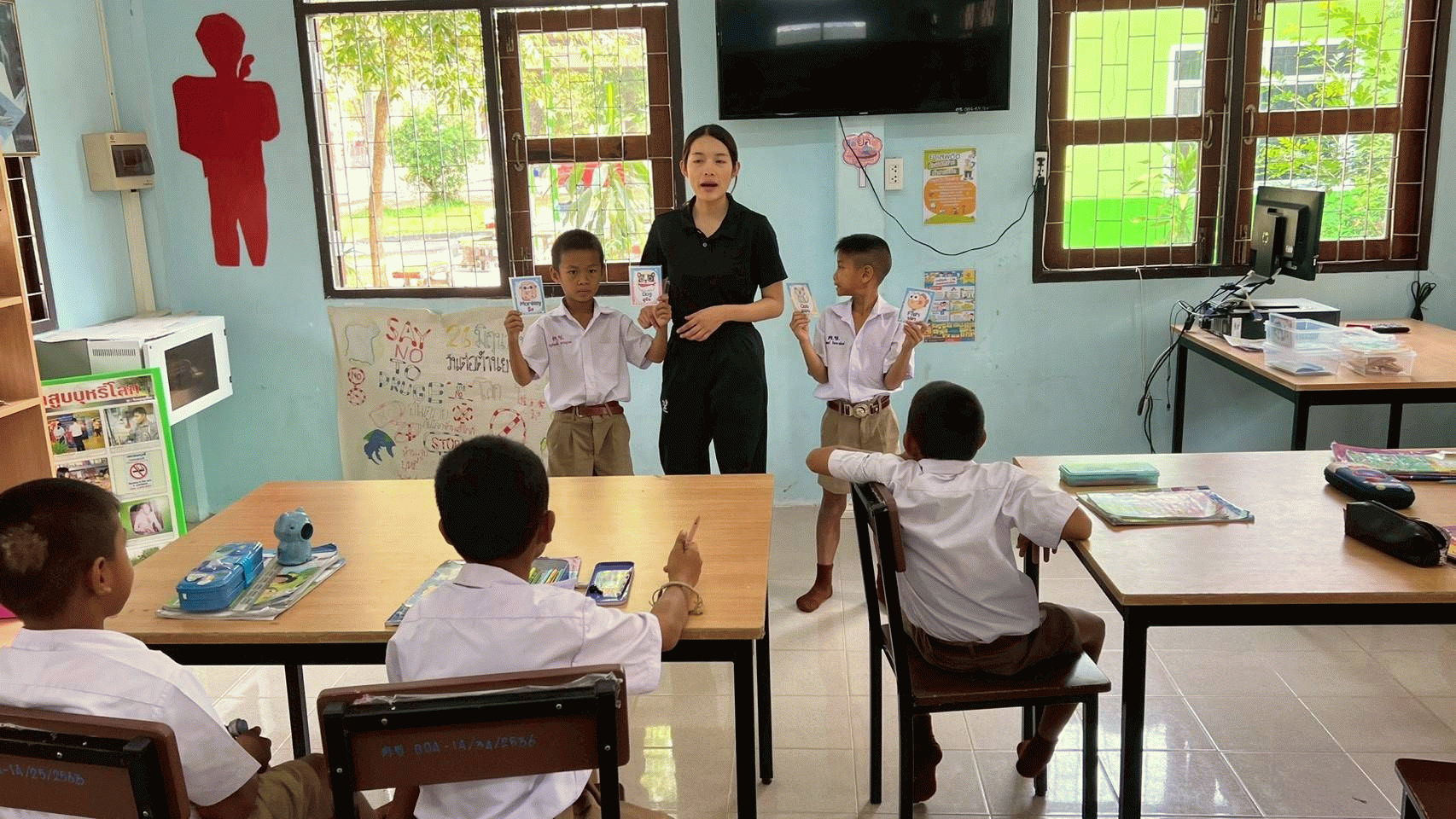 ผลลัพธ์ต่อนักเรียน1. นักเรียนมีความเข้าใจในเรื่อง On the farm เพิ่มขึ้นอย่างชัดเจน สามารถอ่านออกเสียงคำศัพท์สัตว์ในฟาร์มได้อย่างถูกต้อง 2. นักเรียนมีคะแนนเฉลี่ยแบบทดสอบหลังเรียนสูงกว่าก่อนเรียน ร้อยละ 80 ของนักเรียนมีคะแนนเพิ่มขึ้นอย่างมีนัยสำคัญ