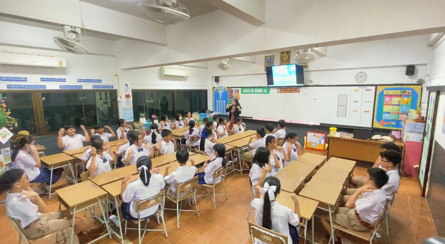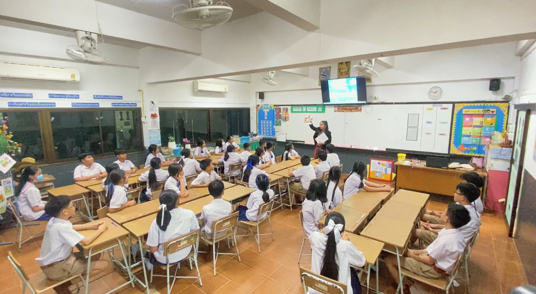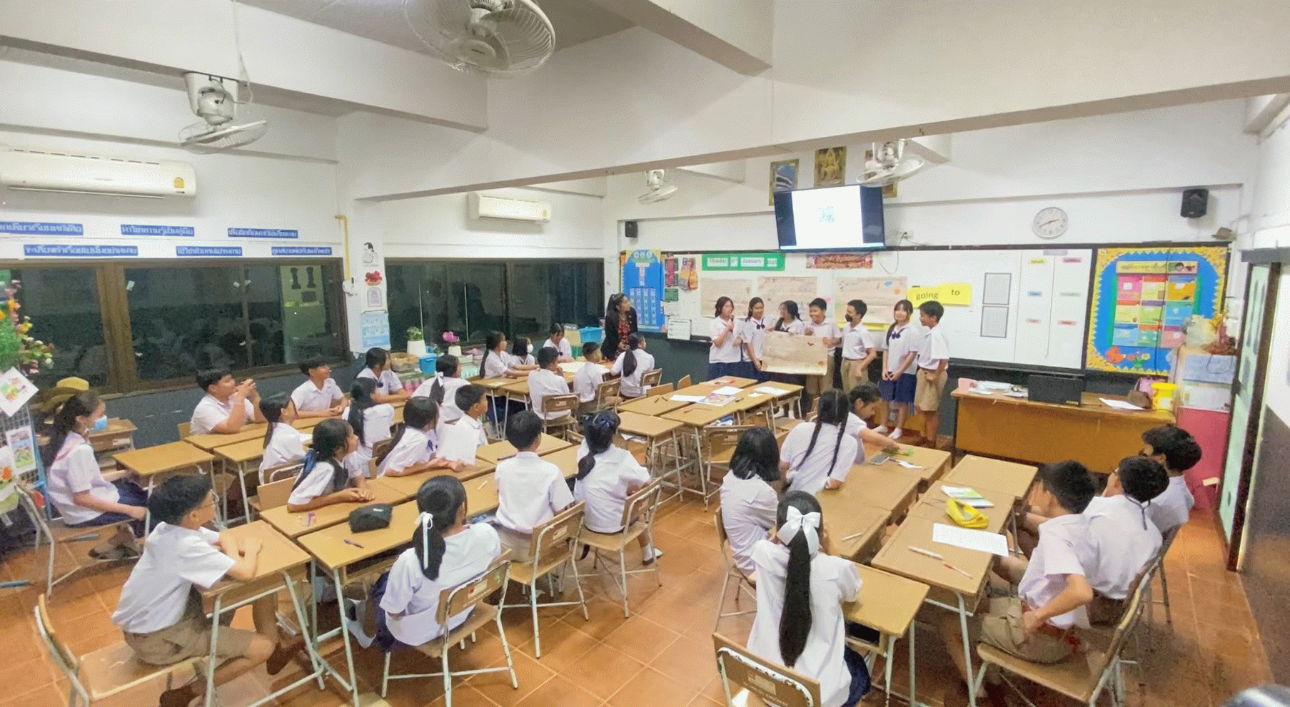 ผลลัพธ์ต่อนักเรียนนักเรียนกล้าแสดงออกและเคารพกติกาการทำงานกลุ่ม ได้รับการพัฒนาทักษะด้านการใช้ภาษาเพื่อการสื่อสารในสถาการณ์ประจำวันแบบง่ายๆได้