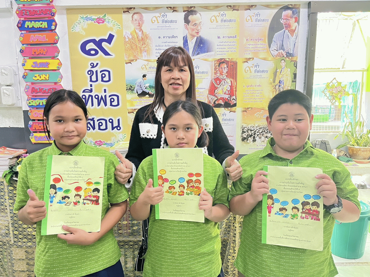 ผลลัพธ์ต่อนักเรียน นักเรียนมีพัฒนาการที่ก้าวกระโดด มีผลคะแนนหลังเรียนสูงกว่าก่อนเรียน มีคะแนนหลังเรียนสูงถึง 85.33% ของคะแนนเต็ม ซึ่งสะท้อนถึงประสิทธิภาพของเทคนิค 5W1H ที่ช่วยจัดระเบียบความคิดให้นักเรียนสามารถจำแนกตัวละคร เหตุการณ์ และเหตุผลของเรื่องได้อย่างเป็นระบบ นอกจากนี้ ผลลัพธ์เชิงคุณภาพยังแสดงให้เห็นว่านักเรียนมีทัศนคติที่ดีต่อการเรียน โดยมีความพึงพอใจในระดับ “มากที่สุด” อันเนื่องมาจากรูปแบบสื่อที่มีความสวยงามและเนื้อหานิทานที่เร้าความสนใจ ทำให้นักเรียนเกิดสมรรถนะการอ่านขั้นสูงที่สามารถนำไปต่อยอดในรายวิชาอื่น ๆ ได้อย่างยั่งยืน