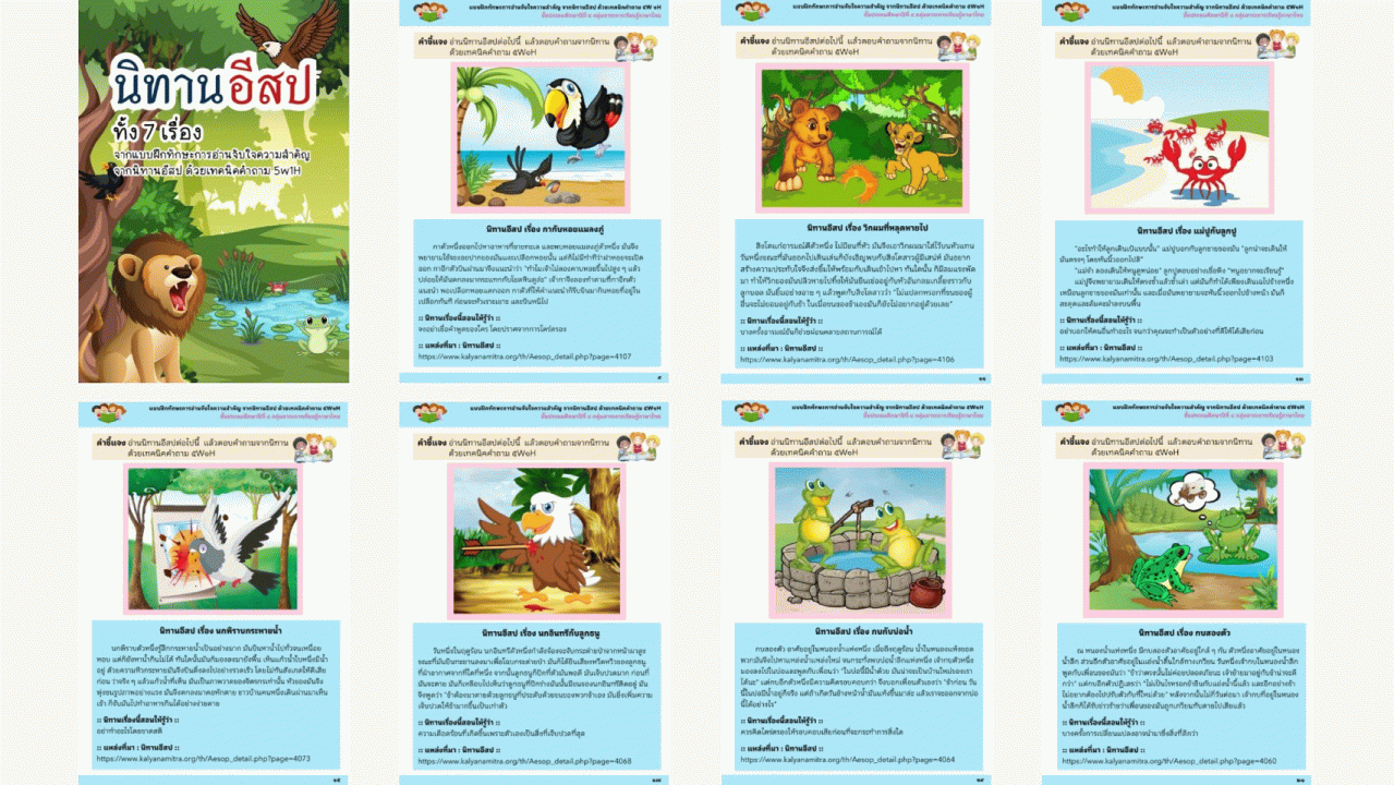 การพัฒนาทักษะการอ่าน โดยใช้แบบฝึกทักษะการอ่านจับใจความสำคัญ จากนิทานอีสป/นิทานพื้นบ้าน ด้วยเทคนิคคำถาม 5W1H