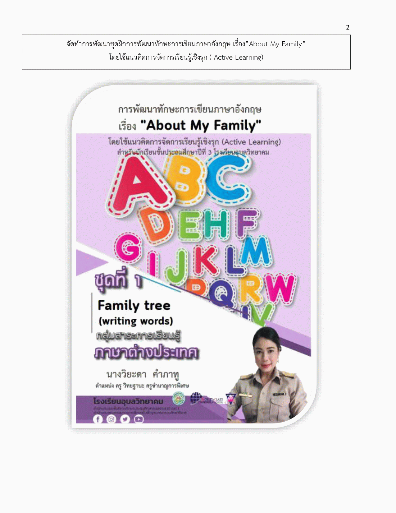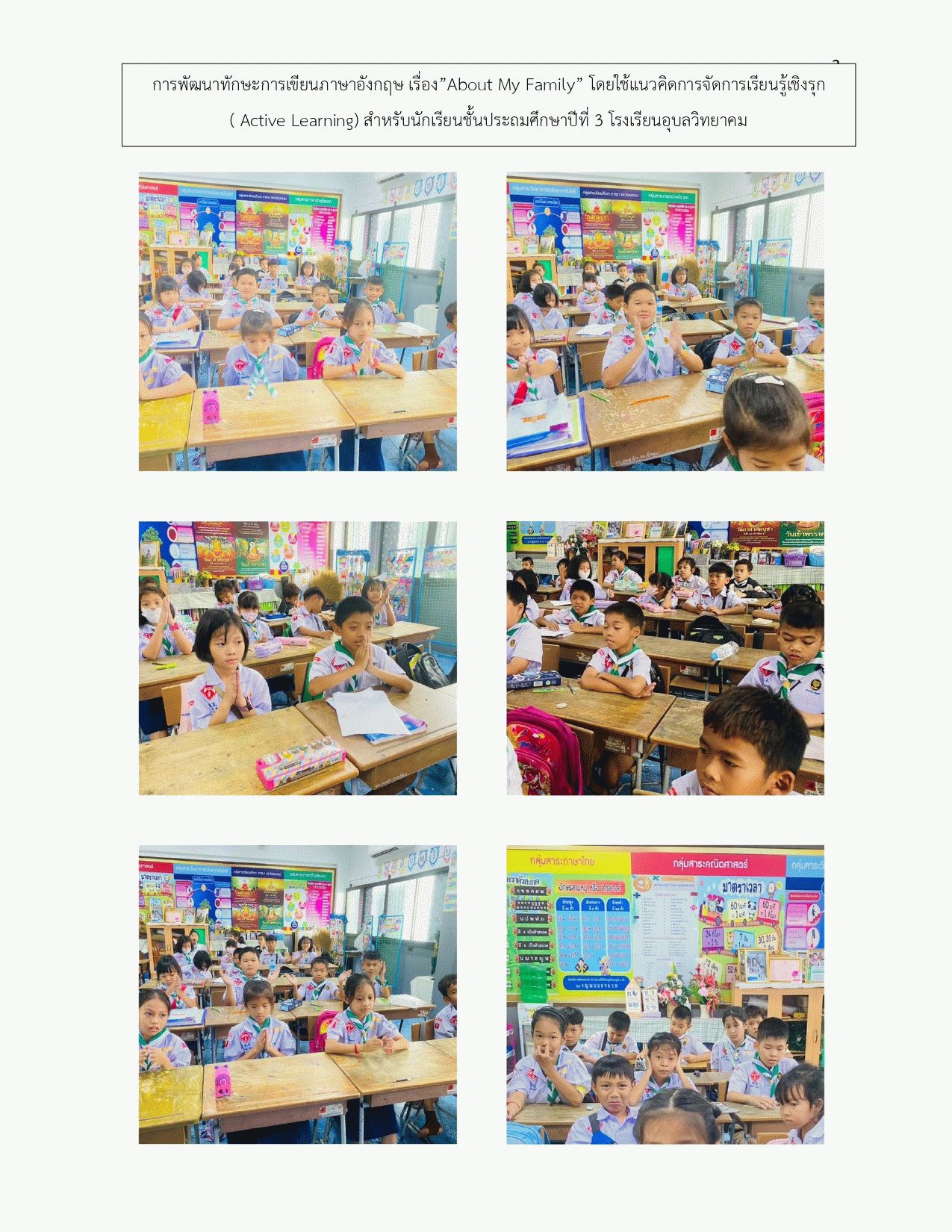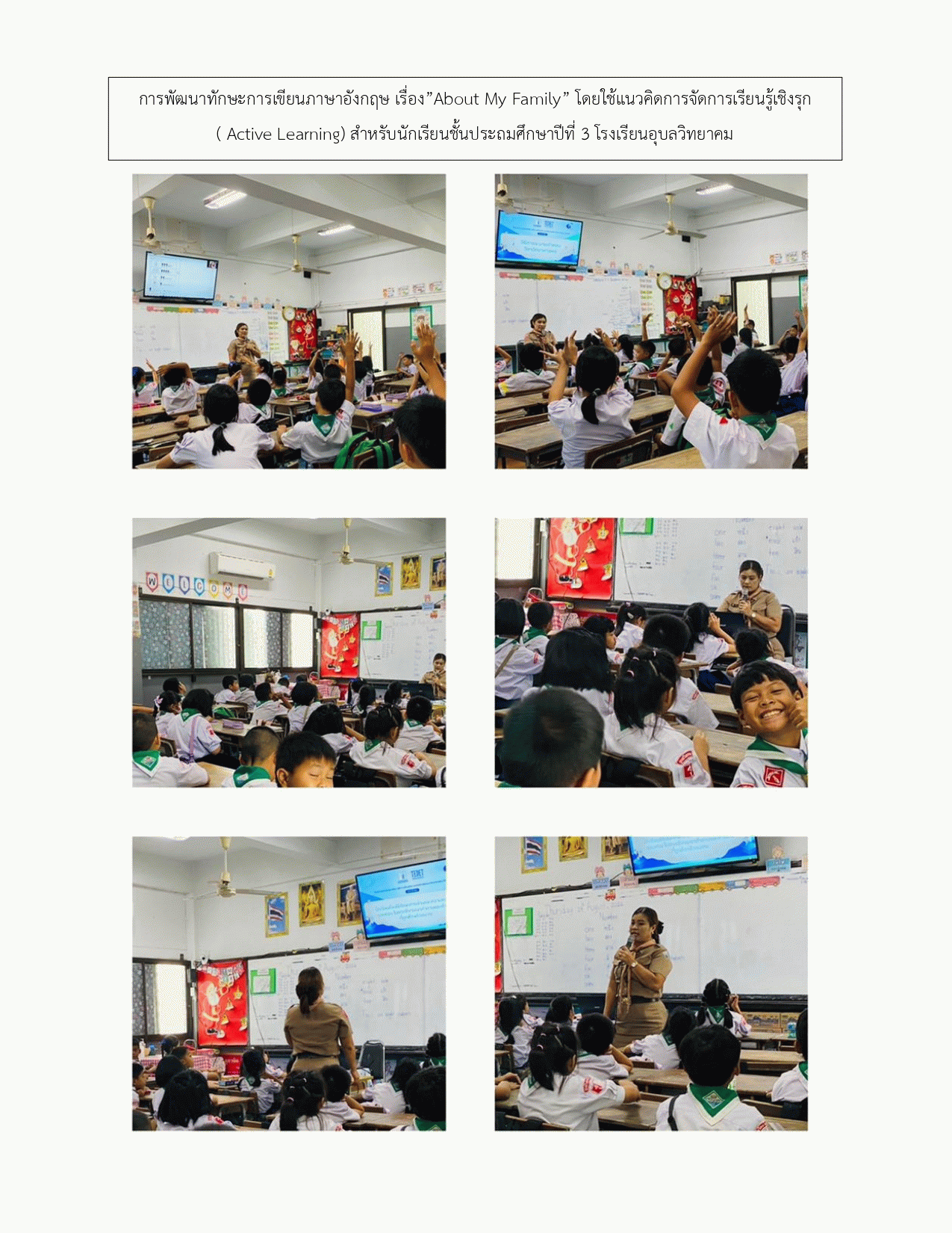 การพัฒนาทักษะการเขียนภาษาอังกฤษ เรื่อง”About My Family” โดยใช้แนวคิดการจัดการเรียนรู้เชิงรุก ( Active Learning) สำหรับนักเรียนชั้นประถมศึกษาปีที่ 3 โรงเรียนอุบลวิทยาคม