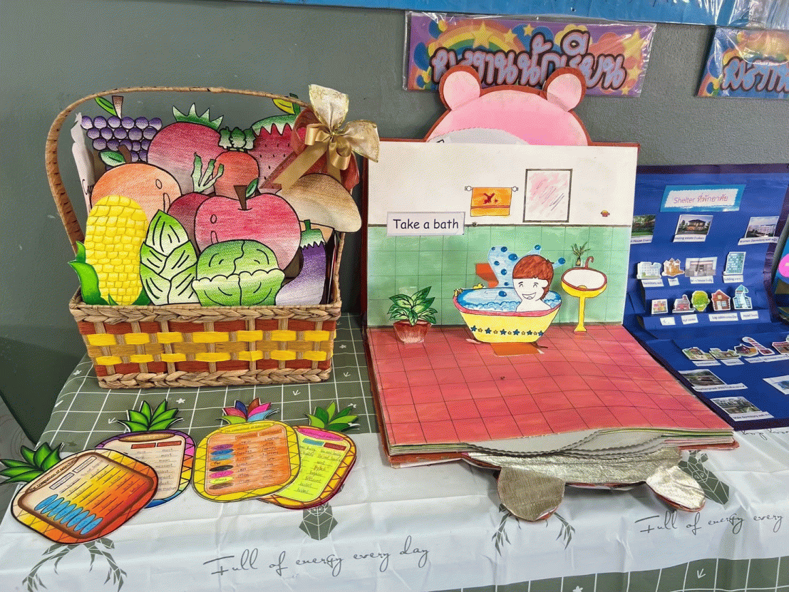 ผลลัพธ์ต่อครู : 1) ครูมีความเข้าใจในหลักการจัดการเรียนรู้ภาษาเพื่อการสื่อสาร และตระหนักถึงความสำคัญของการเปิดโอกาสให้นักเรียนได้ฝึกปฏิบัติจริงมากกว่าการเน้นการท่องจำ ครูวางแผนกิจกรรมอย่างเป็นระบบและสอดคล้องกับระดับพัฒนาการของผู้เรียน