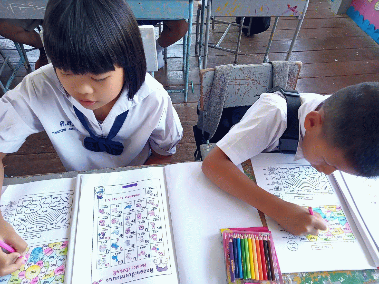 ความสามารถในการอ่านและการสะกดคำของนักเรียนชั้นประถมศึกษา (สาเกต ทองเที่ยง, 2557; ชลลดา กัวหา, 2556; ลีลารัศม์ จาตุรพล, 2555; สุนันทา ปัญญารัตน์, 2554; Stuart, 1999: 578-605; Yeung, Siegel &Chan, 2012) เป็นหลักการถอดรหัสเสียงและการผสมเสียงตัวอักษร ผู้เรียนจะต้องเข้าใจเสียง ของตัวอักษร ต่างๆและออกเสียงเหล่านั้นให้ได้อย่างถูกต้องจึงจะสามารถผสมเสียงออกมาเป็นค่าได้ เช่น คำว่า cat จะสอนให้รู้จักตัว“c”จากเสียงของมันคือเสียง“” ตัว“a” เป็นเสียง“แอะ” และตัว “t” เป็นเสียง“ท” และผสมเสียงกันเป็น “ค-แอะ-ท แคท” (ดวงใจ ตั้งสง่า, 2555-2556)จากปัญหาดังกล่าวข้างต้น ข้าพเจ้าจึงออกแบบสื่อนวัตกรรมพัฒนาทักษะการอ่านออกเสียง สะกดคำศัพท์ภาษาอังกฤษ (Phonics) โดยใช้แบบฝึกทักษะ Short Vowel Sounds เพื่อแก้ปัญหา การอ่านออกเสียงภาษาอังกฤษดังนั้น ในภาคเรียนที่ 2 ปีการศึกษา 256 ข้าพเจ้าได้มองเห็นปัญหาของนักเรียนระดับชั้น ประถมศึกษาปีที่ 4 จึงได้จัดการเรียนรู้และจัดทำแบบฝึกทักษะการอ่านออกเสียงสะกดคำ (Phonics) โดยใช้แบบฝึกทักษะ Short Vowel Sounds เพื่อพัฒนานักเรียนให้มีพื้นฐานด้านการอ่านและพัฒนา ผลสัมฤทธิ์ทางการเรียนให้สูงขึ้น