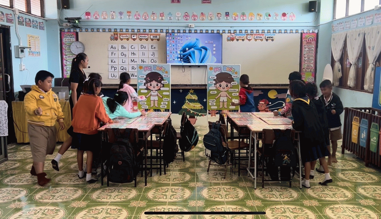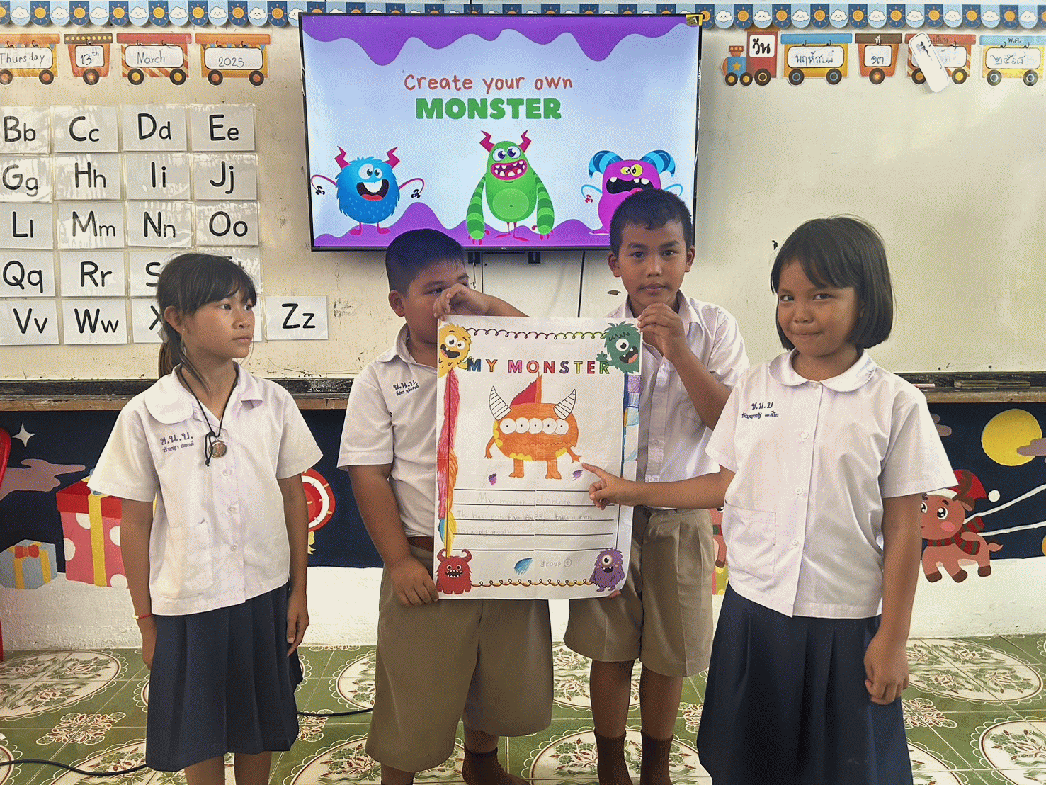 ผลลัพธ์ต่อนักเรียนคุณครูได้มีการริเริ่มพัฒนากระบวนการจัดการเรียนรู้แบบสื่อสาร (Communicative Language Teaching: CLT) ส่งผลทำให้ผู้เรียนได้รับการพัฒนาทักษะต่างๆ จากกิจกรรมการเรียนรู้หน่วยการเรียนรู้ที่ 5 Self เรื่อง My body โดยได้ร่วมกิจกรรมที่ครูจัดตรงตามจุดประสงค์การเรียนรู้ ซึ่งปรากฏในแผนการจัดการเรียนรู้ที่ผู้เรียนได้ฝึกทักษะ ฟัง พูด อ่าน และเขียน โดยจัดกิจกรรมดังนี้ 1)การใช้เพลง 2)กิจกรรมโยนบอลถาม-ตอบ 3)กิจกรรมจับคู่ถาม-ตอบ 4)กิจกรรมวงล้อหรรษา 5)กิจกรรมกลุ่ม Matching game 6)การทำใบกิจกรรม 7)กิจกรรมกลุ่ม My monster โดยผู้เรียนได้ประยุกต์ใช้ทักษะที่ได้รับการพัฒนาในชั้นเรียนได้ถูกต้องเหมาะสม