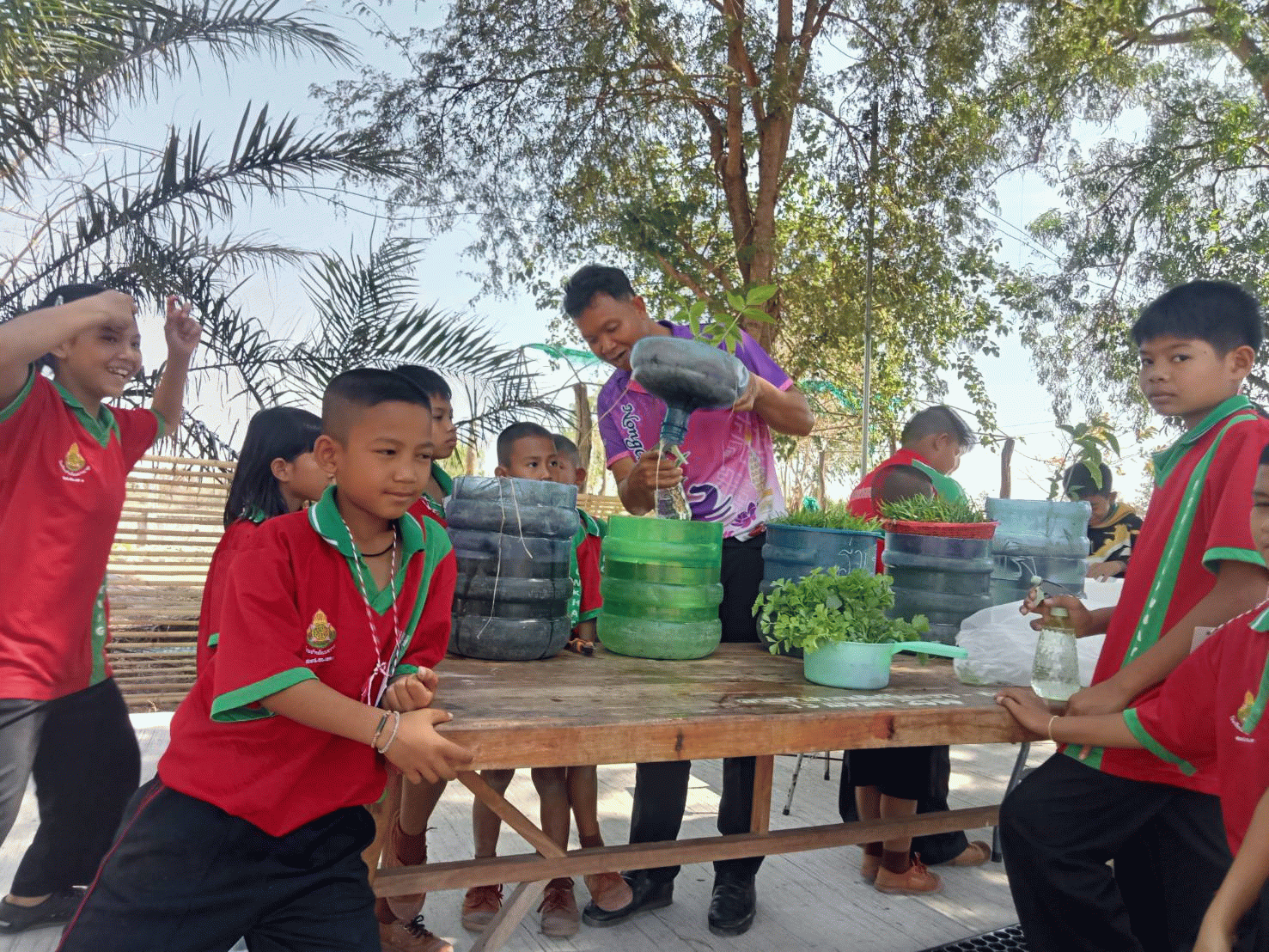 ผลลัพธ์ต่อชุมชน : ชุมชนเห็นการเปลี่ยนแปลงในสถานศึกษา ลูกหลานได้นำผลผลิตจากสวนไปจำหน่ายในชุมชน