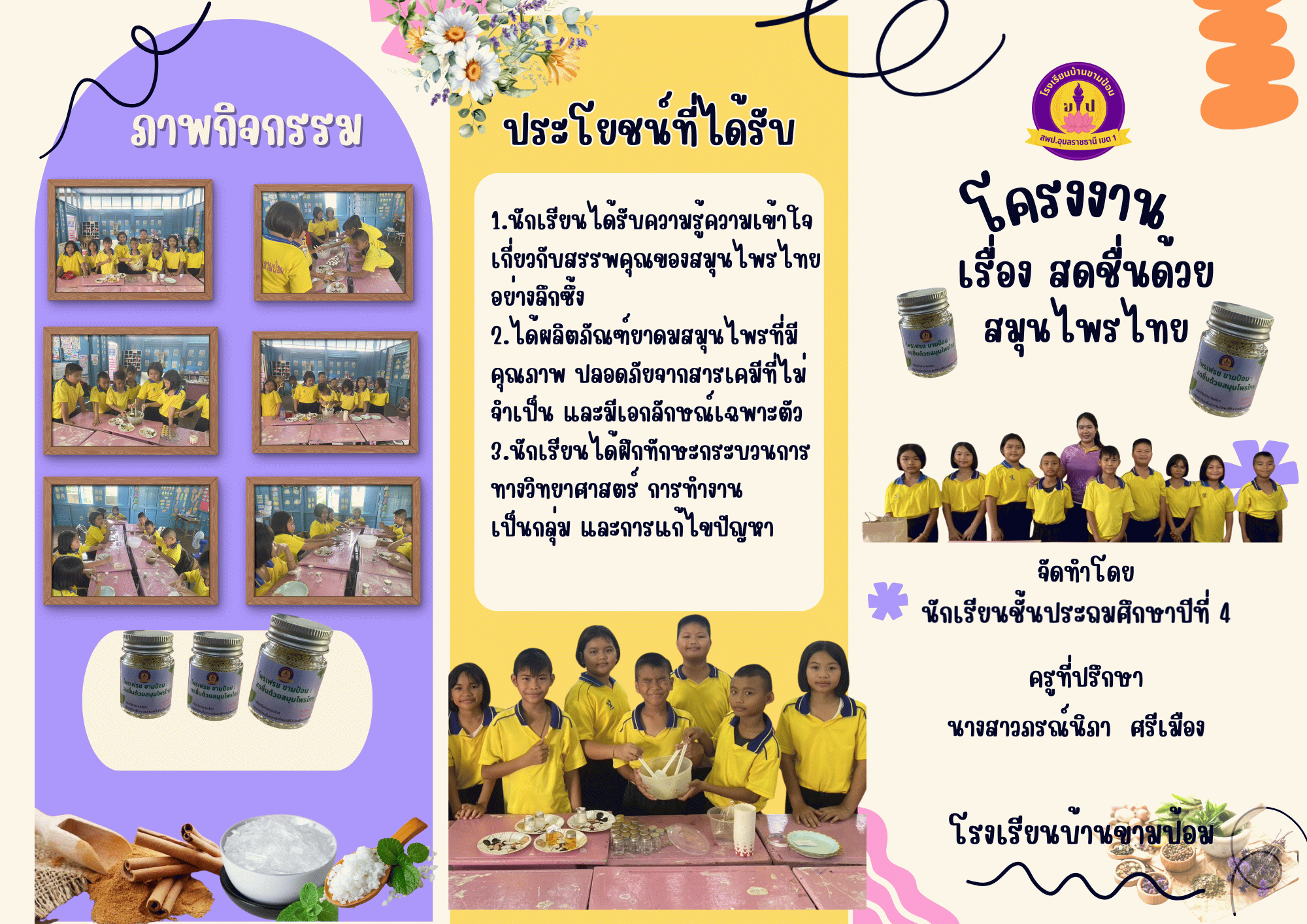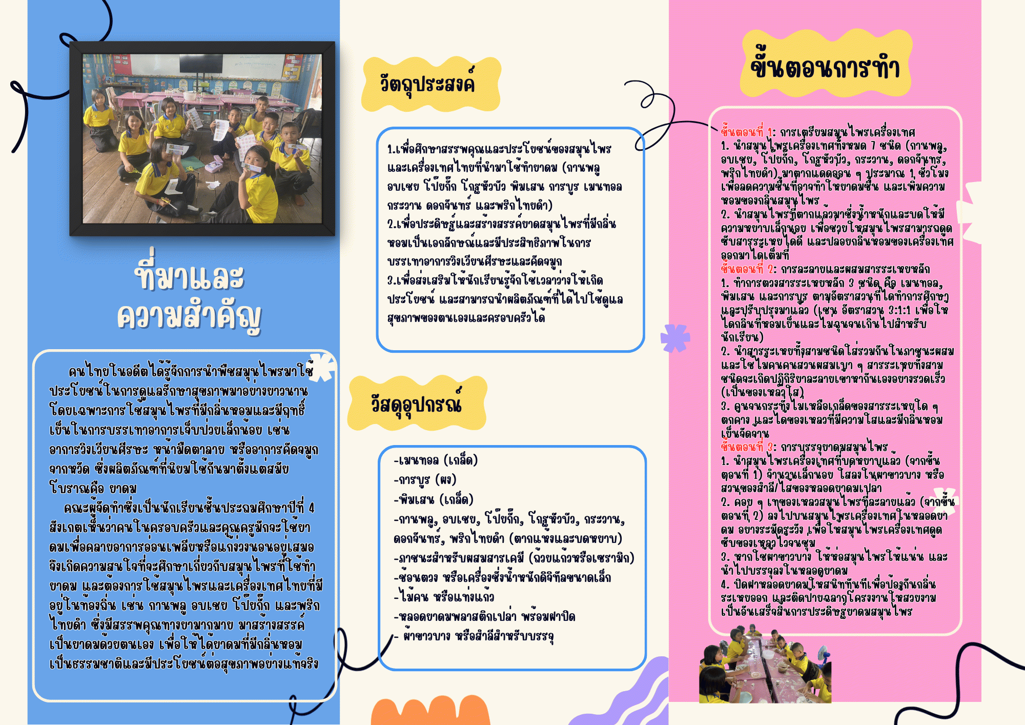 ผลลัพธ์ต่อนักเรียนนักเรียนได้เรียนรู้สรรพคุณของสมุนไพรไทยและทักษะการแปรรูปผลผลิตจากธรรมชาติผ่านการลงมือทำจริง (Active Learning) ช่วยส่งเสริมความคิดสร้างสรรค์ในการสร้างสรรค์ผลิตภัณฑ์ที่เป็นมิตรต่อสิ่งแวดล้อม และสามารถนำความรู้ไปต่อยอดเป็นทักษะอาชีพหรือใช้ดูแลสุขภาพตนเองและครอบครัวในชีวิตประจำวันได้อย่างปลอดภัย