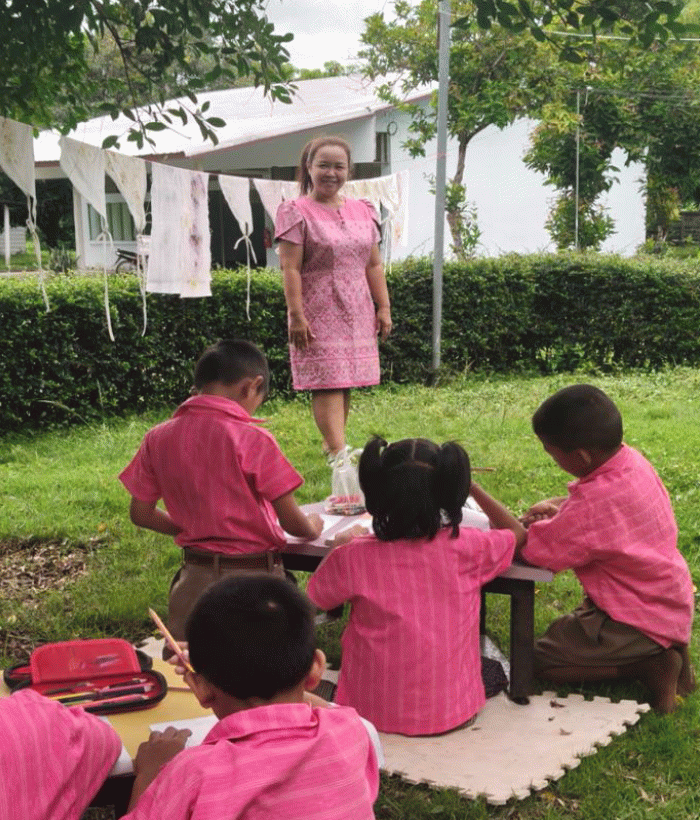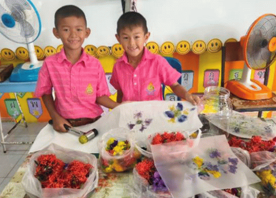 ผลลัพธ์ต่อนักเรียนนักเรียนได้ลงมือปฏิบัติจริงตั้งแต่การคัดเลือกใบไม้ การจัดวางลวดลาย และการพิมพ์ลงบนผืนผ้า ส่งผลให้นักเรียนได้พัฒนาทักษะความคิดสร้างสรรค์ ทักษะการออกแบบ และทักษะการทำงานเป็นขั้นตอนอย่างเป็นระบบ ซึ่งสามารถนำไปประยุกต์ใช้ในชีวิตประจำวันและการประกอบอาชีพในอนาคตได้