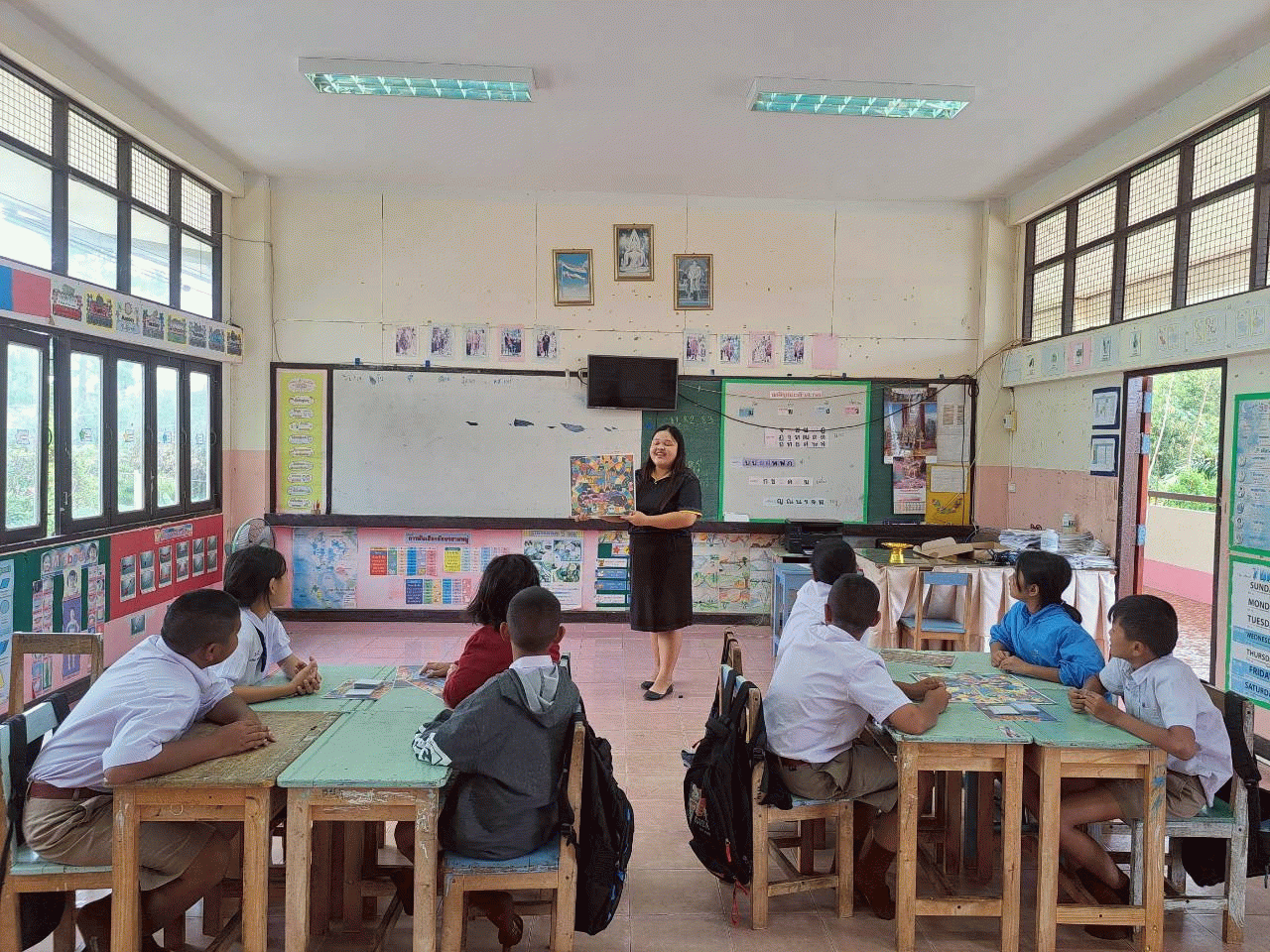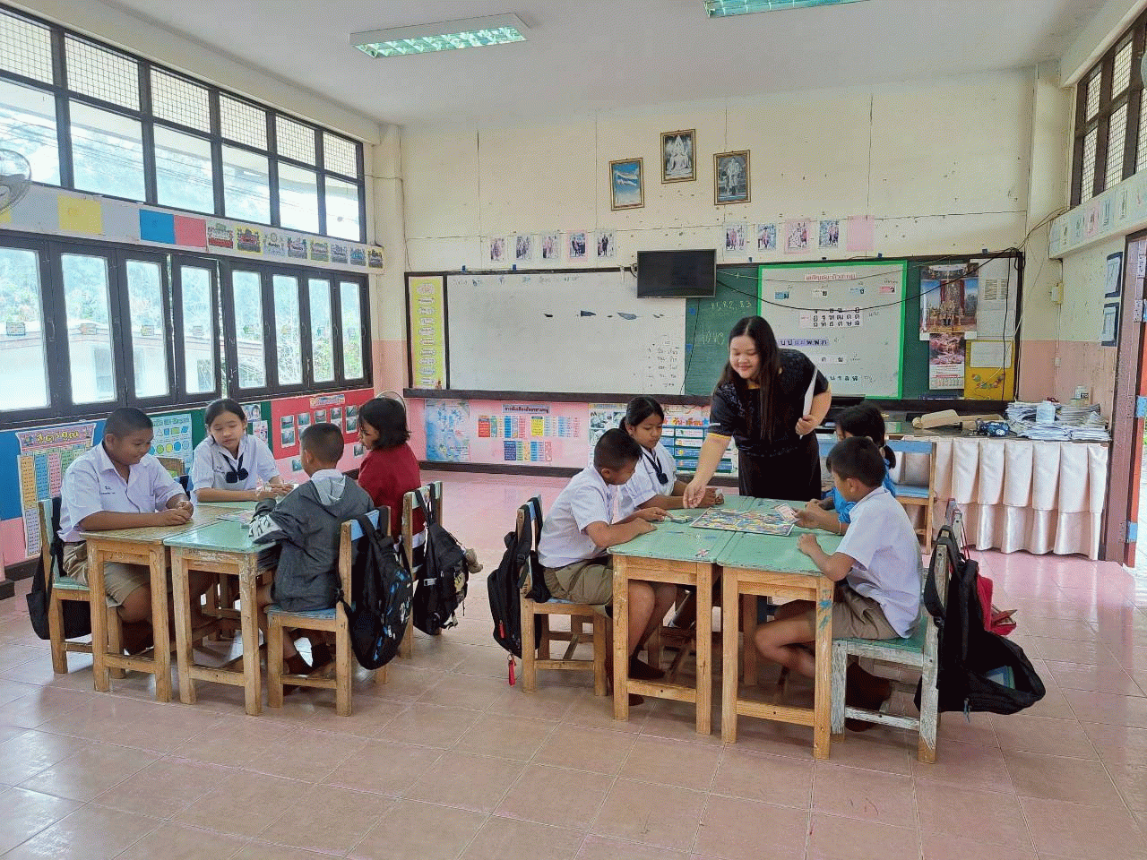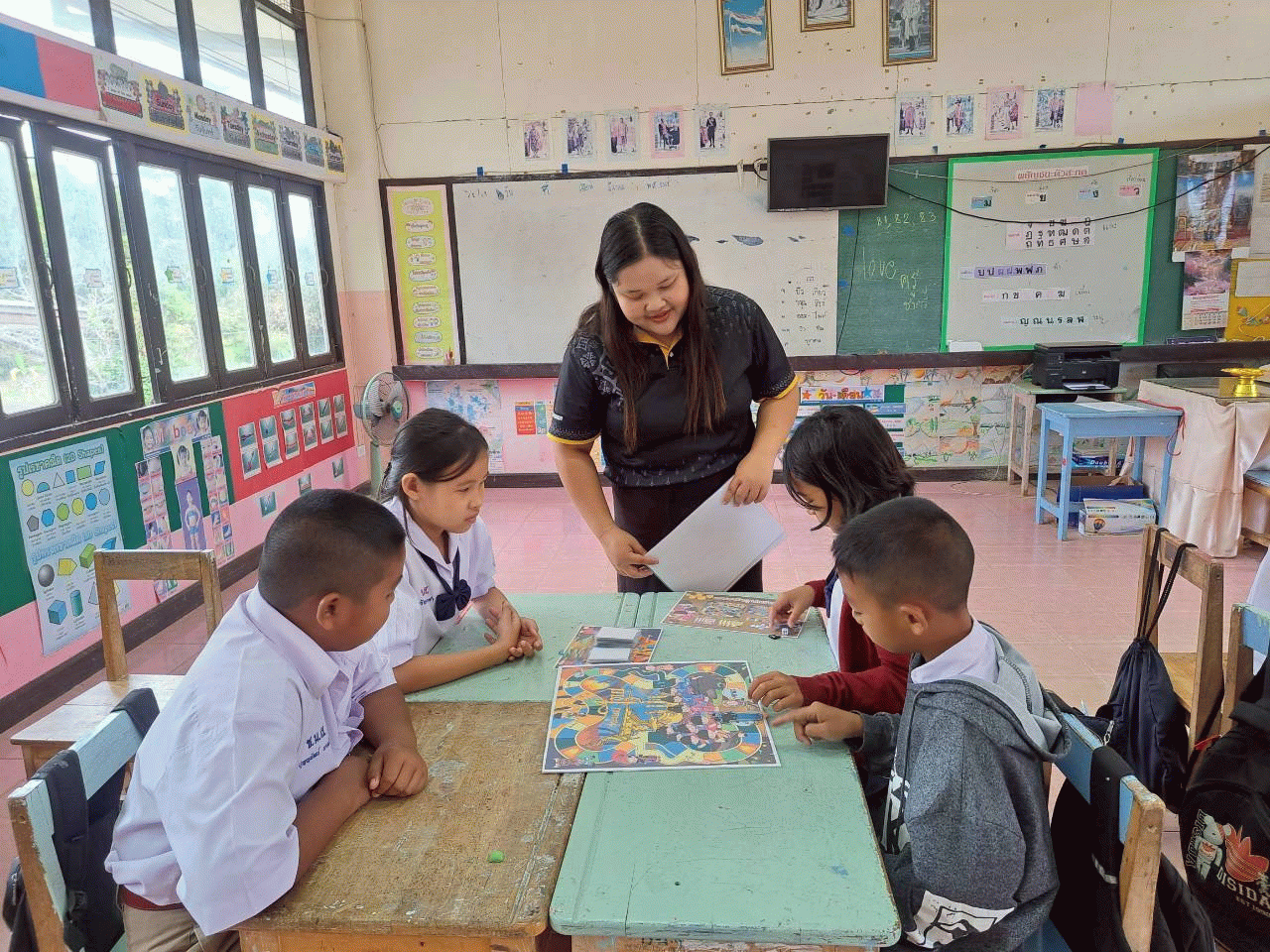 ผลลัพธ์ต่อนักเรียน1. เพื่อศึกษาหาผลสัมฤทธิ์ของนักเรียนชั้นประถมศึกษาปีที่ ๕ ก่อนเรียนและหลังเรียนโดยใช้ชุดการสอน บอร์ดเกม วัฒนธรรมและประเพณีไทย 2. เพื่อพัฒนาความรู้ความเข้าใจเกี่ยวกับวัฒนธรรมและประเพณีไทยของนักเรียนและสามารถนำไปประยุกต์ใช้ได้ในชีวิตประจำวัน ชั้นประถมศึกษาปีที่ ๕ 3. เพื่อพัฒนาชุดการสอน บอร์ดเกม วัฒนธรรมและประเพณีไทย ของนักเรียนชั้นประถมศึกษาปีที่ ๕ ให้มีประสิทธิภาพตามเกณฑ์