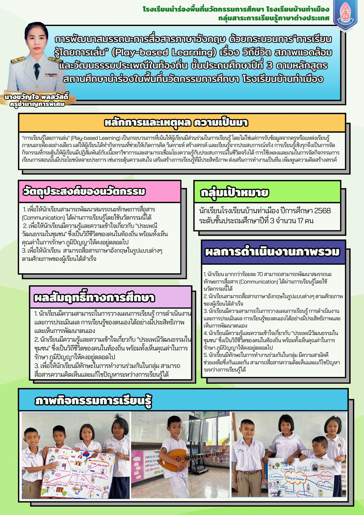 ผลลัพธ์ต่อชุมชน : ชุมชนมีนวัตกรรม ATL Model การจัดการเรียนรู้เชิงรุกโดยใช้เทคโนโลยีร่วมกับชุมชน