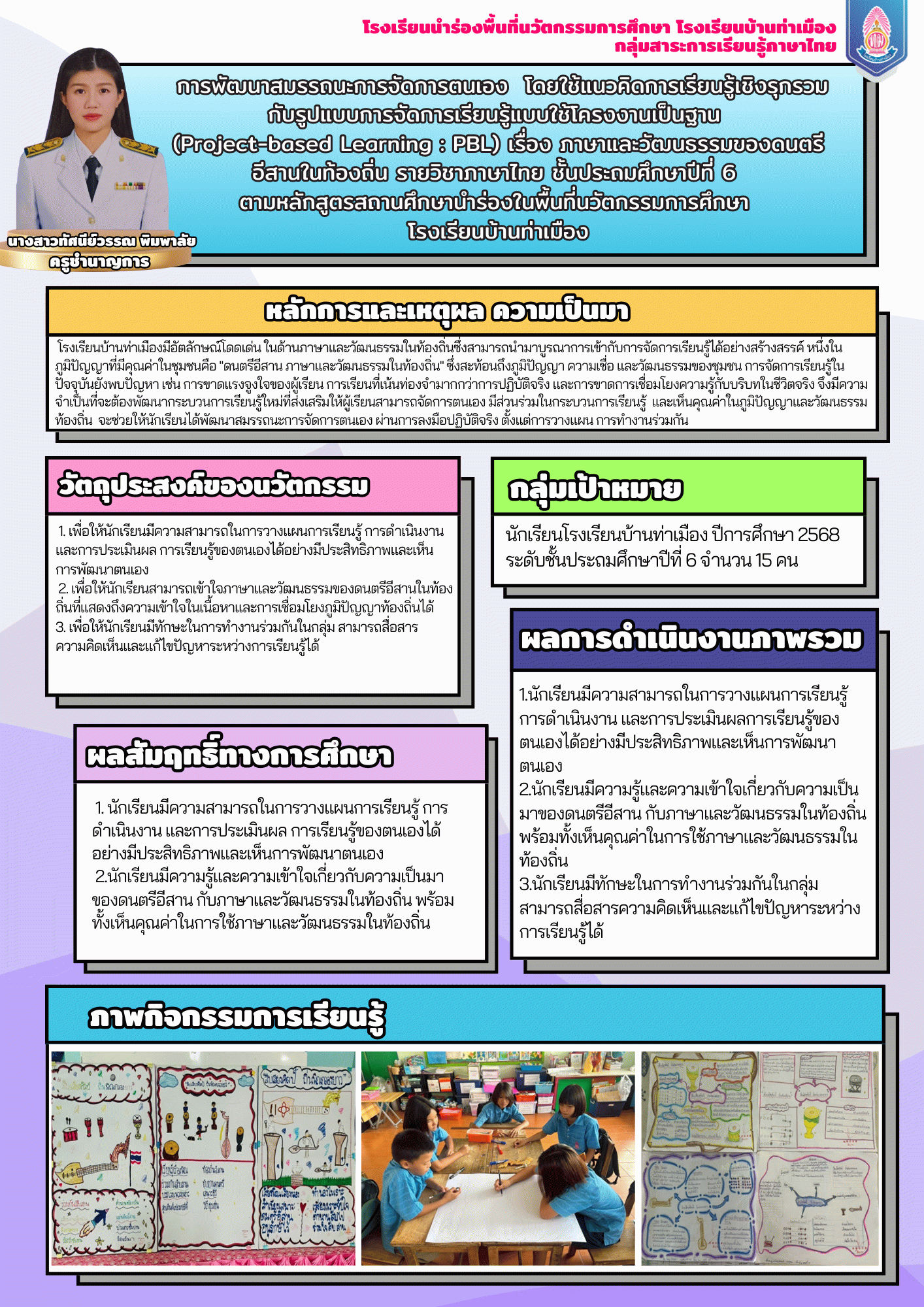 ผลลัพธ์ต่อครู : ครูมีนวัตกรรม ATL Model การจัดการเรียนรู้เชิงรุกโดยใช้เทคโนโลยีร่วมกับชุมชน