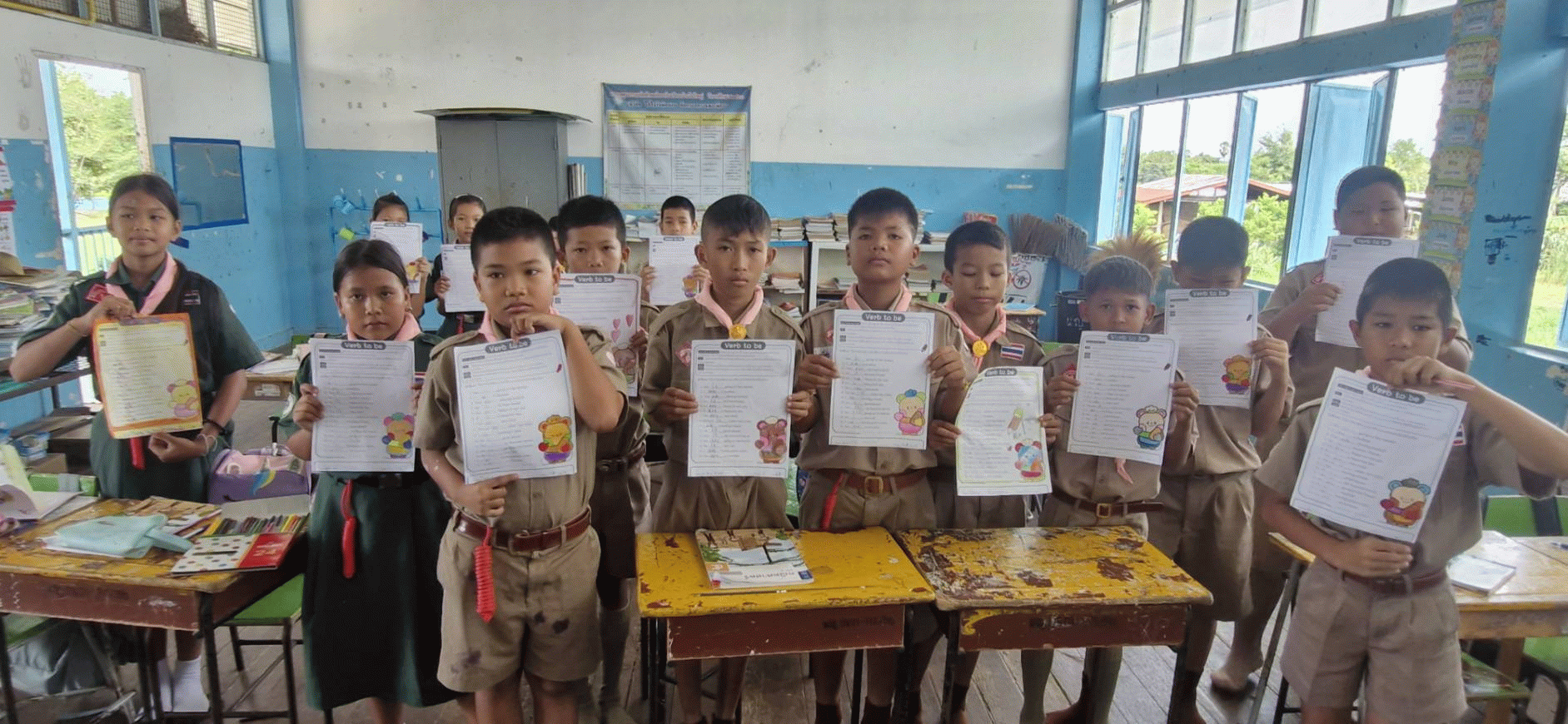 ผลลัพธ์ต่อนักเรียน1) นักเรียนมีความรู้ความเข้าใจสามารถอ่านและเขียนคำศัพท์/ประโยคภาษาอังกฤษง่ายๆได้ด้วยตนเองมากขึ้น 2) นักเรียนมีทักษะการอ่านการเขียนและเกิดความเชื่อมั่นในการอ่านคำศัพท์/ประโยคภาษาอังกฤษ 3) นักเรียนทุกคนช่วยเหลือดูแลซึ่งกันและกัน ตลอดจนความร่วมมือทางการเรียนรู้ (Learning Team) 4) นักเรียนได้เรียนรู้ทักษะ กระบวนการในการคิดและแก้ปัญหาในรูปแบบต่าง ๆ และ ลงมือปฏิบัติจริง 5) นักเรียนชั้นประถมศึกษาปีที่ 6 มีผลการทดสอบทางการศึกษา o-net สูงขึ้น ตามลำดับ 6) นักเรียนมีเจตคติที่ดีต่อวิชาภาษาอังกฤษ เปลี่ยนแนวคิดจาก “ฉันอ่านภาษาอังกฤษไม่ได้” เป็น “ฉันก็อ่านภาษาอังกฤษเป็น”