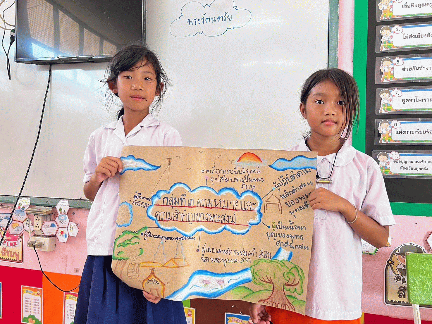 ผลลัพธ์ต่อนักเรียน1. นักเรียนได้รู้ความหมายและประเภทของหลักธรรมทางพระพุทธศาสนาที่ดียิ่งขึ้น 2. นักเรียนได้จำแนกประเภทของหลักธรรมทางพระพุทธศาสนาได้อย่างถูกต้อง 3. นักเรียนได้ทบทวนความรู้เรื่องหลักธรรมทางพระพุทธศาสนาได้ดียิ่งขึ้น