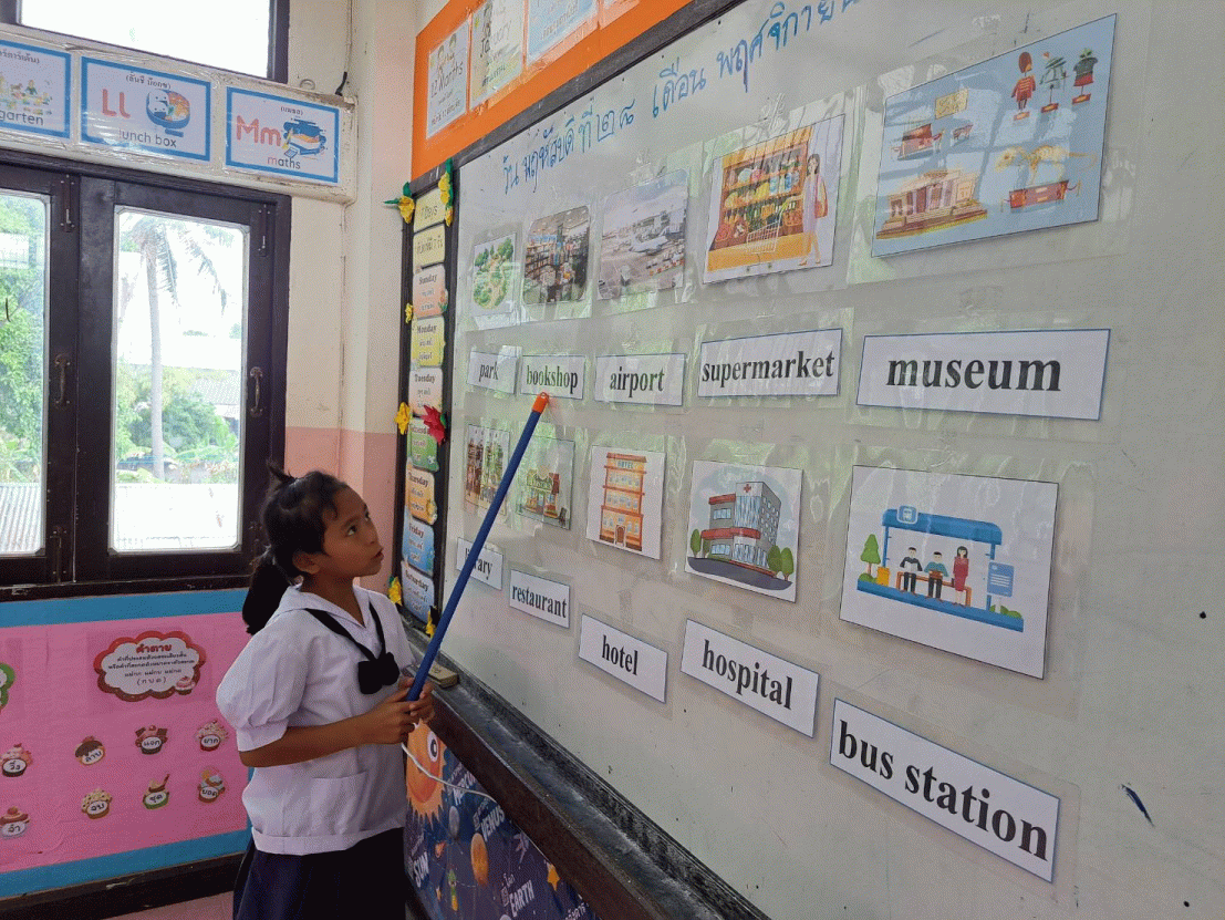 ผลลัพธ์ต่อนักเรียน 1. นักเรียนชั้นประถมศึกษาปีที่ 4 ทุกคนได้รับการพัฒนาทักษะการฟัง การพูดผ่านเกณฑ์ร้อยละ 70 2. นักเรียนชั้นประถมศึกษาปีที่ 4 ทุกคนได้รับการพัฒนาทักษะการอ่าน การเขียนเกณฑ์ร้อยละ 70 3. นักเรียนชั้นประถมศึกษาปีที่ 4 ทุกคนได้รับการพัฒนาทักษะการเรียนรู้คำศัพท์เกณฑ์ร้อยละ 70