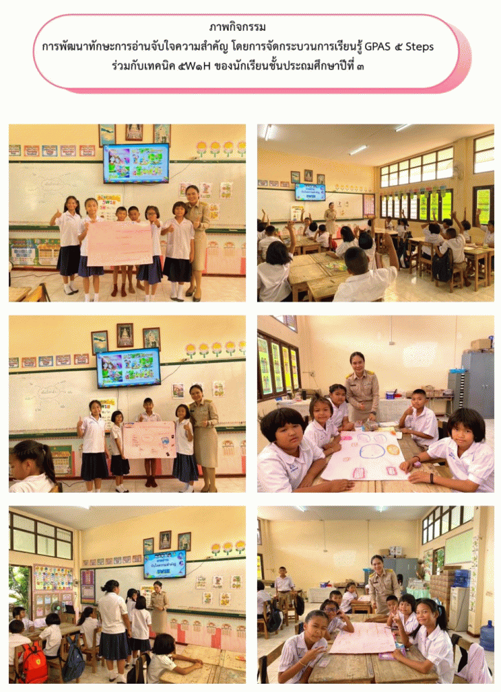 การพัฒนาทักษะการอ่านจับใจความสำคัญ โดยการจัดกระบวนการเรียนรู้ GPAS ๕ Steps ร่วมกับเทคนิค ๕W๑H ของนักเรียนชั้นประถมศึกษาปีที่ ๓
