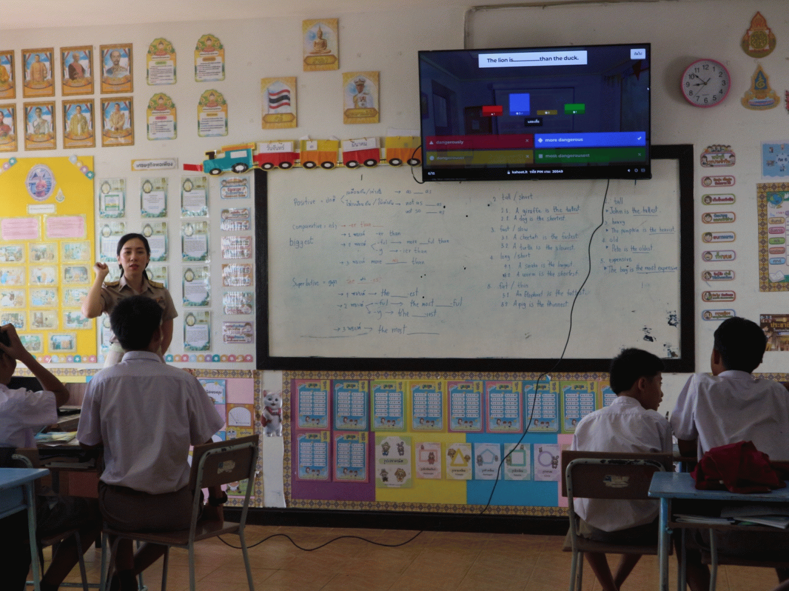 จากประสบการณ์การสอนนักเรียนชั้นมัธยมศึกษาปีที่ 2 ในภาคเรียนที่ 1 ปีการศึกษา 2567 พบว่านักเรียนมีการเรียนรู้ในรายวิชาภาษาอังกฤษอยู่ในระดับดี แต่ยังขาดความกระตือรือร้นในการเรียนละการทำชิ้นงาน ซึ่งส่งผลให้ชิ้นงานหรือคะแนนงานอื่น ไม่ดีเท่าที่ควร การนำนวัตกรรมการจัดการเรียนรู้แบบเกม(Game-based Learning) เช่น Kahoot มาเป็นเครื่องมือที่ช่วยสร้างแรงจูงใจในการเรียนรู้ ทำให้นักเรียนมีส่วนร่วมในชั้นเรียนมากขึ้น อีกทั้งช่วยส่งเสริมการเรียนรู้เชิงโต้ตอบ และลดความเครียดจากการเรียนภาษา ด้วยเหตุนี้ การพัฒนานวัตกรรมที่ใช้ Kahoot ในการสอนเรื่อง Comparison จึงเป็นแนวทางที่สามารถช่วยให้นักเรียนเรียนรู้ได้อย่างมีประสิทธิภาพ