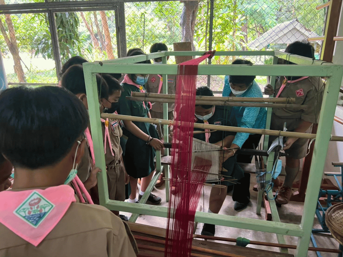 การจัดการเรียนรู้ด้วยการทัศนศึกษาศูนย์การเรียนรู้การปลูกหม่อนเลี้ยงไหมสู่ผ้าไทย ในสวนศิลปาชีพบ้านยางน้อย หน่วยการเรียนรู้ ภาษาถิ่นในสวนศิลป์ที่บ้านฉัน “บัตรคำอิเลกโทรนิคภาษาถิ่นในสวนศิลป์ที่บ้านฉัน” รายวิชาภาษาไทย ระดับชั้นประถมศึกษาปีที่ 1