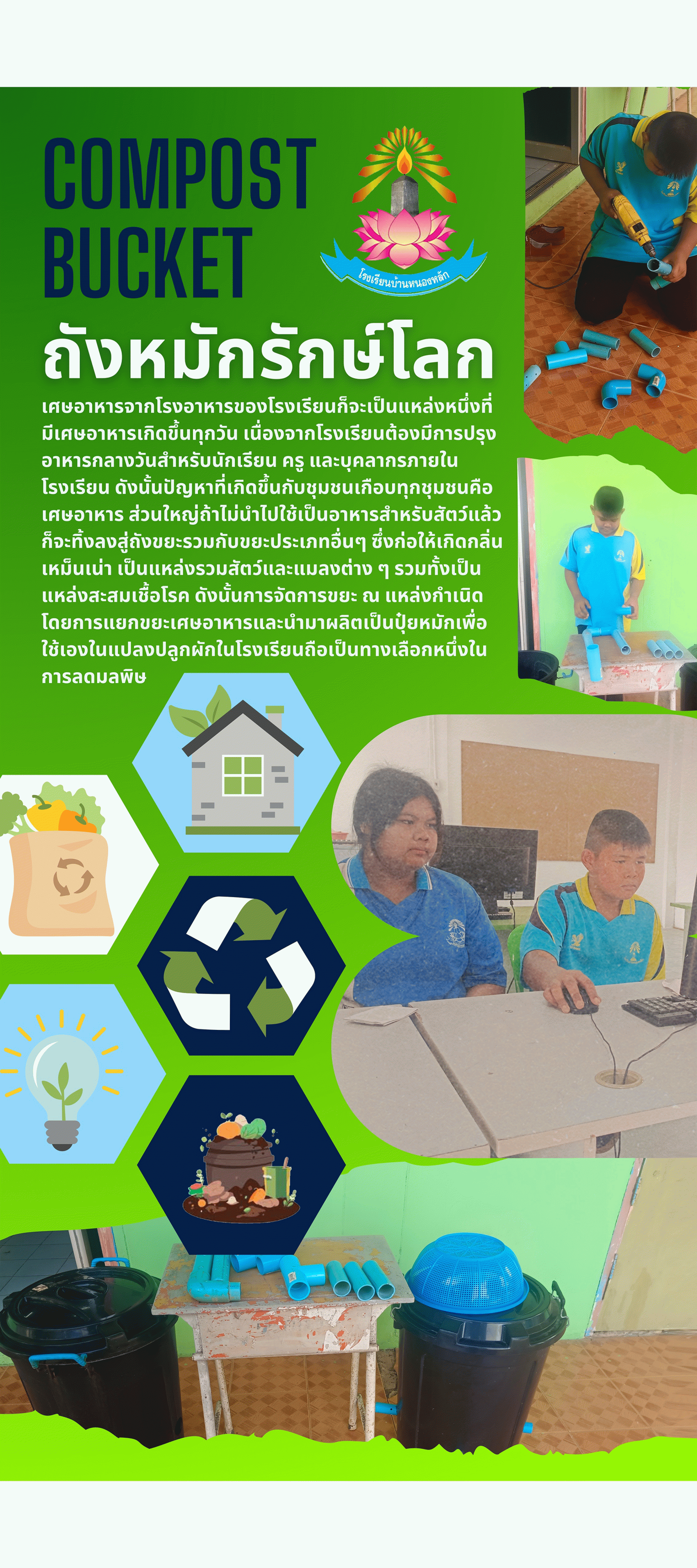 พัฒนาทักษะชีวิต: การสร้างและใช้งานถังหมักปุ๋ยอินทรีย์เป็นการฝึกทักษะชีวิตที่สำคัญ เช่น ทักษะการวางแผน การทำงานอย่างเป็นขั้นตอน การแก้ปัญหาเฉพาะหน้า การทำงานร่วมกับผู้อื่น การสังเกตและการบันทึกผล ซึ่งเป็นทักษะที่จำเป็นสำหรับการดำรงชีวิตในอนาคต