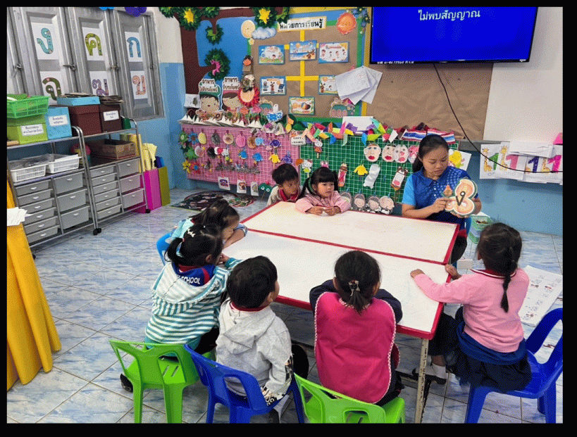 ผลลัพธ์ต่อชุมชน : • สร้างความร่วมมือระหว่างบ้าน โรงเรียน และชุมชน: ผู้ปกครองมีส่วนร่วมในกิจกรรมการเรียนรู้ เช่น อ่านนิทานกับลูก สังเกตพัฒนาการของลูก • กระตุ้นความตระหนักถึงความสำคัญของภาษาและการศึกษา: ชุมชนมองเห็นความสำคัญของการพัฒนาเด็กตั้งแต่ปฐมวัย • สร้างเด็กที่มีศักยภาพกลับสู่ชุมชน: เด็กที่มีทักษะการสื่อสารและการคิดวิเคราะห์จะเป็นกำลังสำคัญในอนาคต • เป็นแบบอย่างในการส่งเสริมการเรียนรู้ตลอดชีวิต: เมื่อชุมชนเห็นเด็กเรียนรู้อย่างมีความสุข ก็สามารถต่อยอดไปสู่การพัฒนาครอบครัวและท้องถิ่นได้
