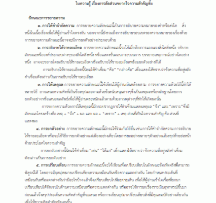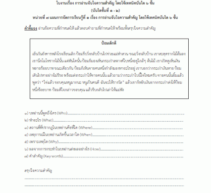 การพัฒนาทักษะการอ่านจับใจความสำคัญของนักเรียนชั้นมัธยมศึกษาปีที่ ๒ ด้วยเทคนิคบันได ๖ ขั้น