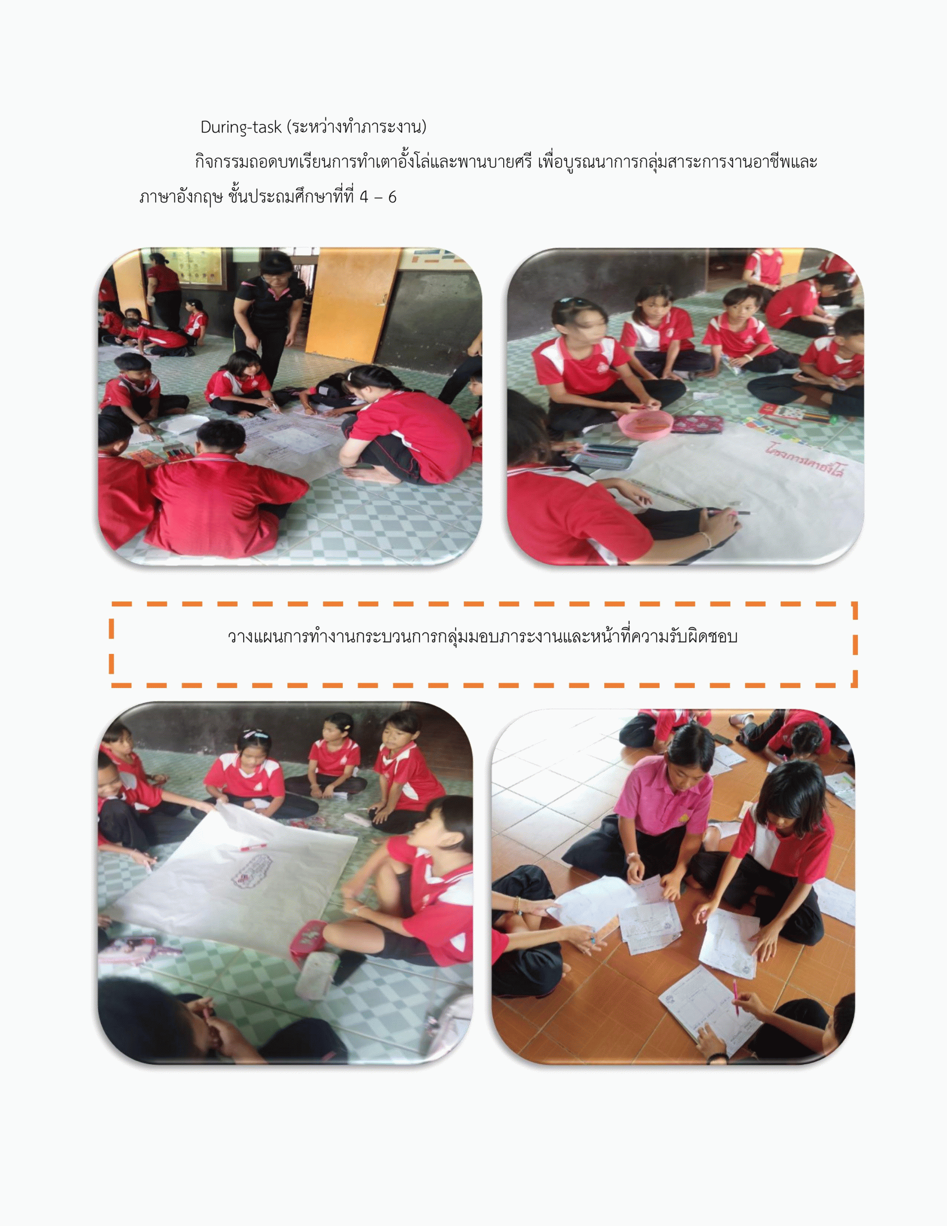 นวัตกรรมส่งเสริมทักษะการอ่านคำและประโยคภาษาอังกฤษเพื่อการสื่อสาร เรื่อง Learning market in the communication of village ที่เน้นภาระงาน( Task-Based Learning) โดยใช้ทฤษฎีการสอนแบบมีส่วนร่วม ที่ยึดองค์ความรู้ภูมิปัญญา ชั้นประถมศึกษาปีที่ 6