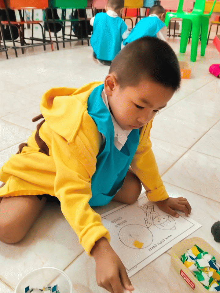 จากประสบการณ์ที่สอนชั้นอนุบาลปีที่ 2 พัฒนาการด้านความแข็งแรงของกล้ามเนื้อเล็กกล้ามเนื้อมือนิ้วมือของนักเรียนยังไม่แข็งแรงและการประสานสัมพันธ์ระหว่างมือกับตาของนักเรียนยังไม่ดีเท่าที่ควรจึงได้จัดกิจกรรมให้เด็ก ๆ ได้พัฒนากล้ามเนื้อมือด้วยกิจกรรมศิลปะสร้างสรรค์