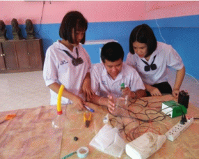 ขั้นที่ 6 แสดงความรู้ ผลงาน เมื่อแสดงผลงานทางวิทยาศาสตร์และการประเมินผล เป็นการฝึก เสนอความคิดของจัดการเรียนการสอนเสร็จในแต่ละครั้ง ผู้เรียนจะมีผลงานของกลุ่มออกมา และจัดแสดง ไว้ในที่ที่ผู้สอนจัดเตรียมไว้ให้ เป็นการช่วยให้ผู้เรียนตอกย้ำและตรวจสอบความเข้าใจของตน ตลอดจน แสดงให้เห็นถึงความสามารถ ความสามัคคี ความคิดสร้างสรรค์ และความรู้ที่ได้จากการเรียน สร้างความ ภูมิใจให้กับกลุ่มตนเอง และเป็นการแสดงให้ผู้อื่นได้รับรู้ อีกทั้งยังมีผลต่อการเรียนการสอนในครั้งต่อไป ขั้นนี้จะช่วยให้ผู้เรียนสามารถนําความรู้ที่ได้มาประมวลและประยุกต์ใช้ในเรื่องอื่นๆ ได้