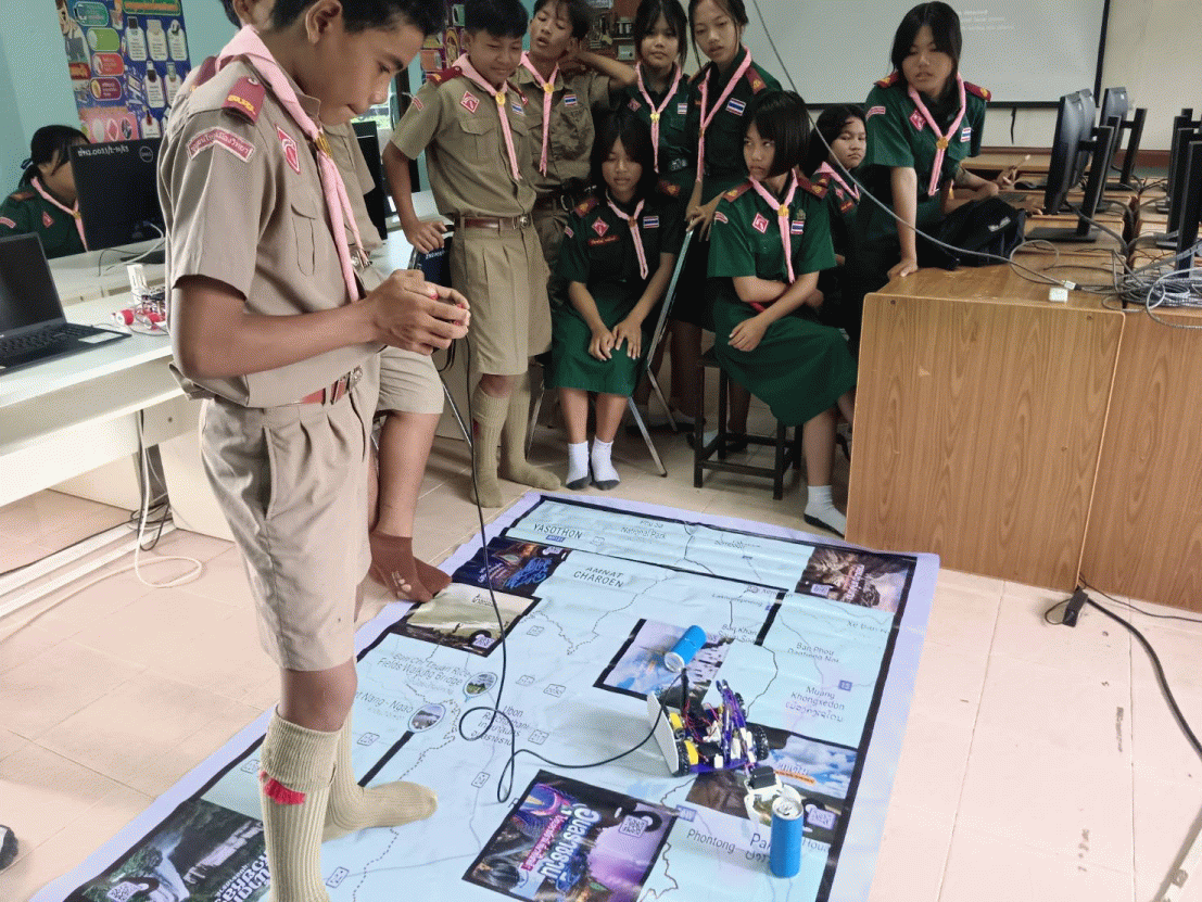 ผลลัพธ์ต่อนักเรียน1. สมรรถนะทางเทคโนโลยี มีทักษะพื้นฐานด้าน Coding และการประกอบหุ่นยนต์ เข้าใจการใช้เทคโนโลยีเพื่อแก้ปัญหาในชีวิตจริง 2. ทักษะการคิดวิเคราะห์และแก้ปัญหา นักเรียนสามารถวางแผน ทดลอง และปรับปรุงผลงานตามปัญหาที่พบ มีทักษะในการสื่อสารแนวคิดและนำเสนอผลงาน 3. ทักษะการทำงานร่วมกัน (Collaboration) ทำงานเป็นทีม มีบทบาทชัดเจนในการแบ่งหน้าที่ ฝึกความรับผิดชอบและการประสานงานในกลุ่ม 4. ความภูมิใจในท้องถิ่น (Local Pride) ได้เรียนรู้ประวัติศาสตร์และแหล่งท่องเที่ยวในบ้านเกิด มีแรงบันดาลใจในการอนุรักษ์และเผยแพร่วัฒนธรรมท้องถิ่น