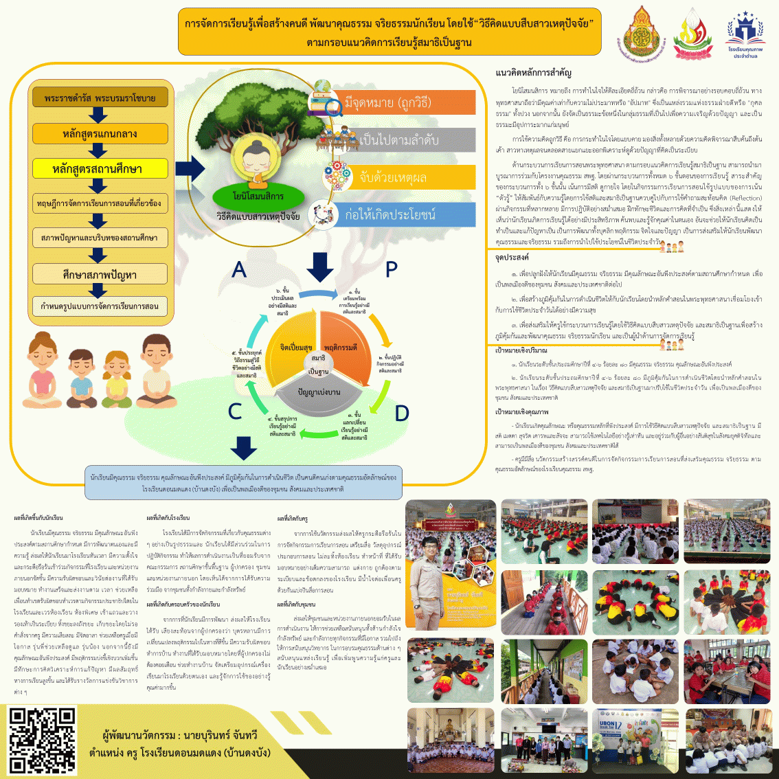 การจัดการเรียนรู้เพื่อสร้างคนดี พัฒนาคุณธรรม จริยธรรมนักเรียน โดยใช้“วิธีคิดแบบสืบสาวเหตุปัจจัย” ตามกรอบแนวคิดการเรียนรู้สมาธิเป็นฐาน