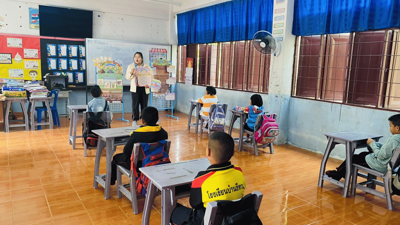 ผลลัพธ์ต่อชุมชน : - เกิดความร่วมมือระหว่างโรงเรียนกับชุมชนมากขึ้น การนำนวัตกรรมมาใช้ในการเรียนการสอนโดยเฉพาะที่ใช้เพลงและกิจกรรมสนุกสนาน อาจมีการจัดกิจกรรมที่ชวนผู้ปกครองหรือคนในชุมชนมีส่วนร่วม เช่น งานแสดงผลงาน การประกวด หรือเวทีแสดงศักยภาพนักเรียน ทำให้ ชุมชนมีบทบาทในการสนับสนุนการศึกษา - เสริมสร้างสายสัมพันธ์ระหว่างโรงเรียนกับครอบครัว เมื่อนักเรียนเรียนรู้ผ่านกิจกรรมที่สนุก เช่น การร้องเพลง การเล่นบทบาทสมมติ ผู้ปกครองมักสนับสนุนและมีส่วนร่วมมากขึ้น เช่น ฝึกซ้อมกับลูก ๆ ที่บ้านซึ่งเป็นการ กระชับความสัมพันธ์ในครอบครัว และสร้างวัฒนธรรมการเรียนรู้ในบ้าน - ชุมชนเกิดความภาคภูมิใจในโรงเรียนท้องถิ่นของตน โดยเมื่อนักเรียนมีพัฒนาการดี ชุมชนเกิดความเชื่อมั่นศรัทธาในโรงเรียน ส่งผลให้ชุมชนสนับสนุนโรงเรียนมากขึ้น ทั้งด้านทรัพยากร กำลังคน และความร่วมมือ