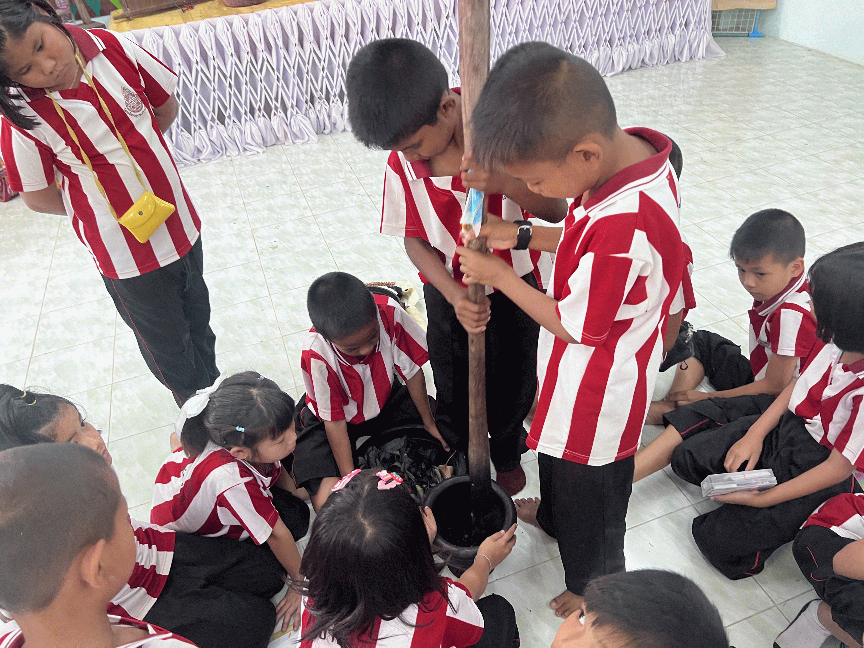 ชุมชนบ้านหนองบ่อ ตำบลหนองบ่อ อำเภอเมือง จังหวัดอุบลราชธานี เป็นชุมชนที่มีความหลากหลายทางวัฒนธรรมและมีเอกลักษณ์ทางวัฒนธรรมที่โดดเด่น ไม่ว่าจะเป็นวัฒนธรรมด้านภาษา การแต่งกายด้วยชุดผ้าดำไหม การย้อมผ้าด้วยผลมะเกลือซึ่งเป็นวัตถุดิบที่มีมากในท้องถิ่น ประเพณีและความเชื่อเกี่ยวกับการฟ้อนกลองตุ้มเพื่อขอฝน โดยจะมีเครื่องแต่งกายที่เป็นเอกลักษณ์ คือผ้าไหมทอลายลูกแก้ว ย้อมสีดำจากธรรมชาติด้วยผลมะเกลือดิบ และผ้าซิ่นทอลายทิว ลายปราสาทผึ้ง ประกอบกับผ้าซิ่นลายจกดาว พร้อมด้วยเครื่องประดับเครื่องสานที่ทำจากใบจาก เรียกว่า บักยัน ซึ่งเป็นเรื่องราวที่ควรค่าแก่การอนุรักษ์ให้คงอยู่สืบไปโดยที่ผู้เรียนได้ซึมซับวิถีชีวิตในชุมชน ที่พบเห็นได้เป็นปกติ จึงเกิดแนวคิดการพัฒนาทักษะการคิดเชิงคำนวณของนักเรียนชั้นประถมศึกษาปีที่ 3 โดยการผสานศิลปะ วัฒนธรรม และภูมิปัญญาท้องถิ่น การย้อมผ้าไหมสีดำจากธรรมชาติด้วยลูกมะเกลือดิบ โดยลำดับขั้นตอนกระบวนการแสดงเป็นอัลกอริทึม