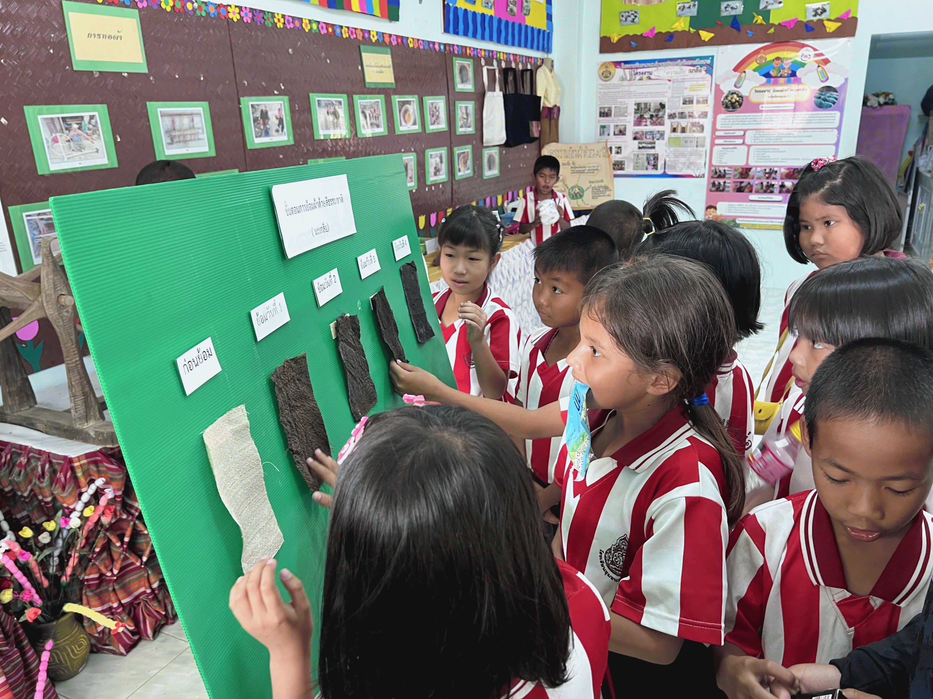 ผลลัพธ์ต่อชุมชน : 1) คณะกรรมการสถานศึกษา ผู้ปกครอง และชุมชน ได้รับรู้และมีส่วนร่วมในการเรียนรู้ของนักเรียน ผ่านกิจกรรมการเรียนรู้ที่เปิดโอกาสให้มีการสื่อสารแลกเปลี่ยนและนำความรู้ท้องถิ่นมาบูรณาการกับการเรียนรู้ 2) ชุมชนเกิดความภาคภูมิใจในวัฒนธรรม ภูมิปัญญาท้องถิ่น โดยเฉพาะความรู้เกี่ยวกับผ้าไหมลายลูกแก้วย้อมดำด้วยลูกมะเกลือ ที่เป็นเอกลักษณ์ของบ้านหนองบ่อ จังหวัดอุบลราชธานี 3) ความร่วมมือระหว่างโรงเรียนกับชุมชนมีความเข้มแข็งมากขึ้น โดยใช้การเรียนรู้ของนักเรียนเป็นจุดศูนย์กลางของการมีส่วนร่วม