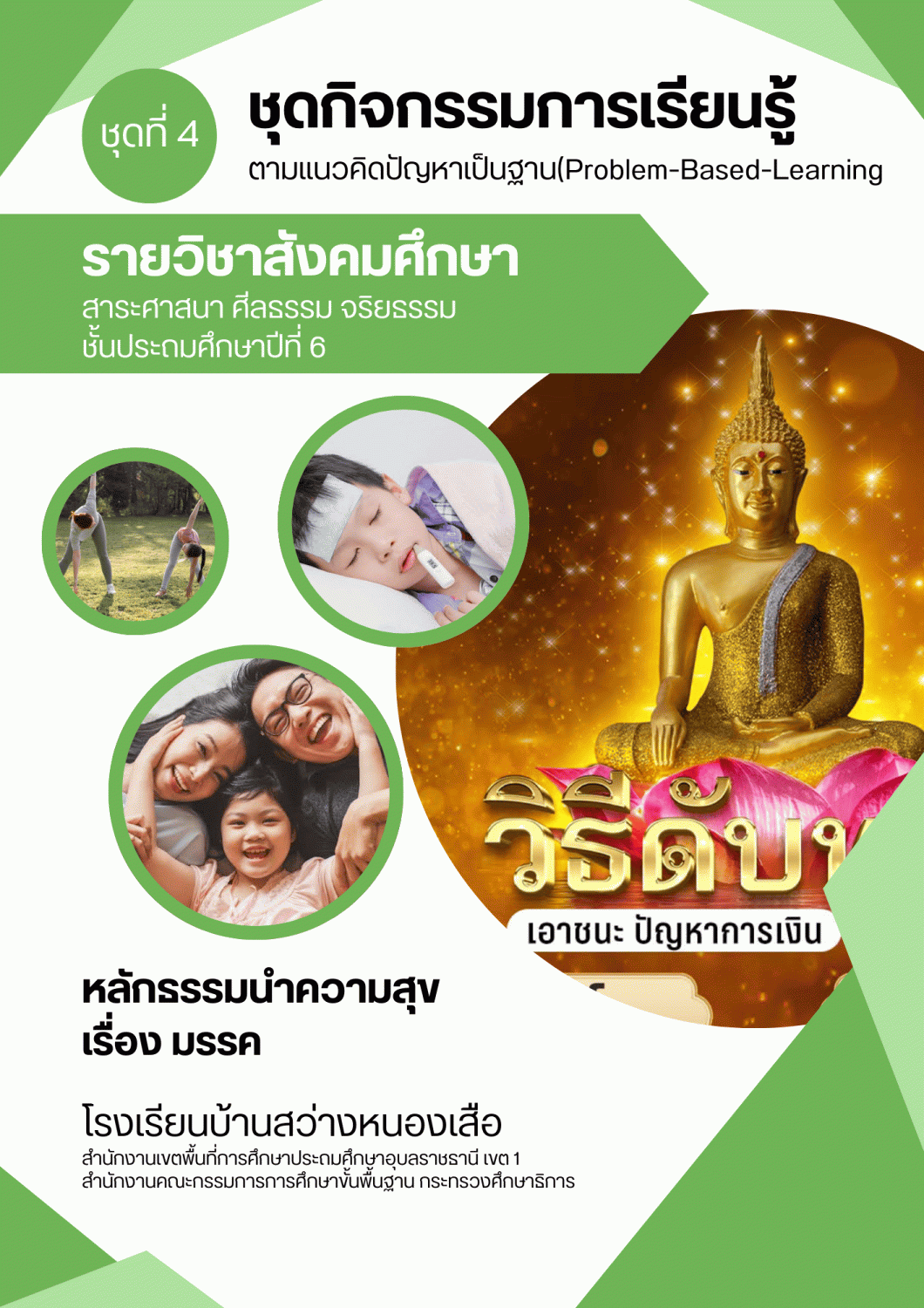 การพัฒนาชุดกิจกรรมการเรียนรู้โดยใช้ปัญหาเป็นฐาน เรื่อง หลักธรรมนำความสุข ในวิชาสังคมศึกษา สาระศาสนา ศีลธรรม จริยธรรม ของนักเรียนชั้นประถมศึกษาปีที่ 6