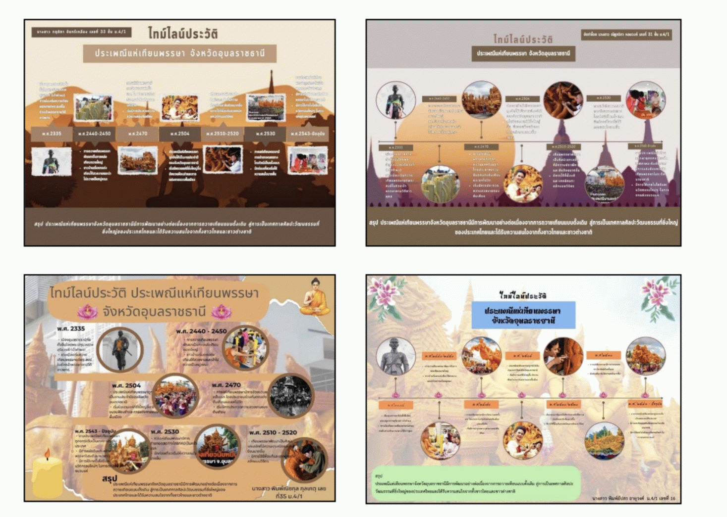 ผลลัพธ์ต่อนักเรียน1. นักเรียนชั้น มัธยมศึกษาปีที่ 4 มีความสามารถในการคิดวิเคราะห์ ในการศึกษา เรื่อง ประวัติความเป็นมาของประเพณีแห่เทียนพรรษาจังหวัดอุบลราชธานี โดยใช้โครงงานเป็นฐาน 2. นักเรียนชั้น มัธยมศึกษาปีที่ 4 มีทักษะการทำงานเป็นทีม ในการศึกษา เรื่อง ประวัติความเป็นมาของประเพณีแห่เทียนพรรษาจังหวัดอุบลราชธานี โดยใช้โครงงานเป็นฐาน