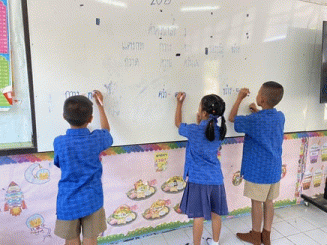 ผลการประเมินด้านการอ่านการเขียนของผู้เรียนในปีการศึกษาที่ผ่านมา พบว่า ผู้เรียนขาดทักษะการอ่านการเขียน คือ อ่านเขียนคำควบกล้ำไม่เหมาะสมกับวัย