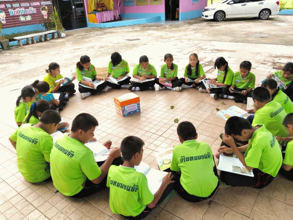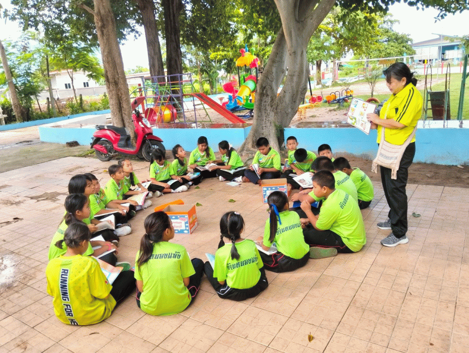 นวัตกรรมการส่งเสริมทักษะภาษาอังกฤษผ่านกิจกรรมห้องสมุดเคลื่อนที่ด้วยหนังสือสองภาษาในบรรยากาศธรรมชาติของนักเรียนโรงเรียนบ้านหนองแล้ง