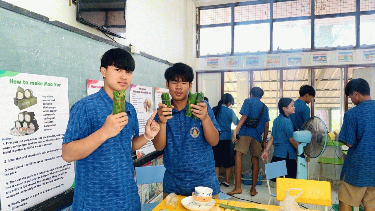 ผลลัพธ์ต่อนักเรียนเชิงปริมาณ 1. นักเรียนชั้นมัธยมศึกษาปีที่ 3 โรงเรียนบ้านปลาดุก ปีการศึกษา 2567 จำนวน 24 คน เชิงคุณภาพ 1. ผู้เรียนมีผลสัมฤทธิ์ทางการเรียนรายวิชาภาษาอังกฤษที่สูงขึ้น 2. ผู้เรียนสามารถทำตามขั้นตอนโดยใช้คำสั่งภาษาอังกฤษได้ถูกต้อง 3. ผู้เรียนมีความสนใจใฝ่รู้ มุ่งมั่นในการทำงาน เกิดความรักและภาคภูมิใจในอัตลักษณ์ของ จังหวัดอุบลราชธานี เรื่อง ผลิตภัณฑ์ในชุมชน
