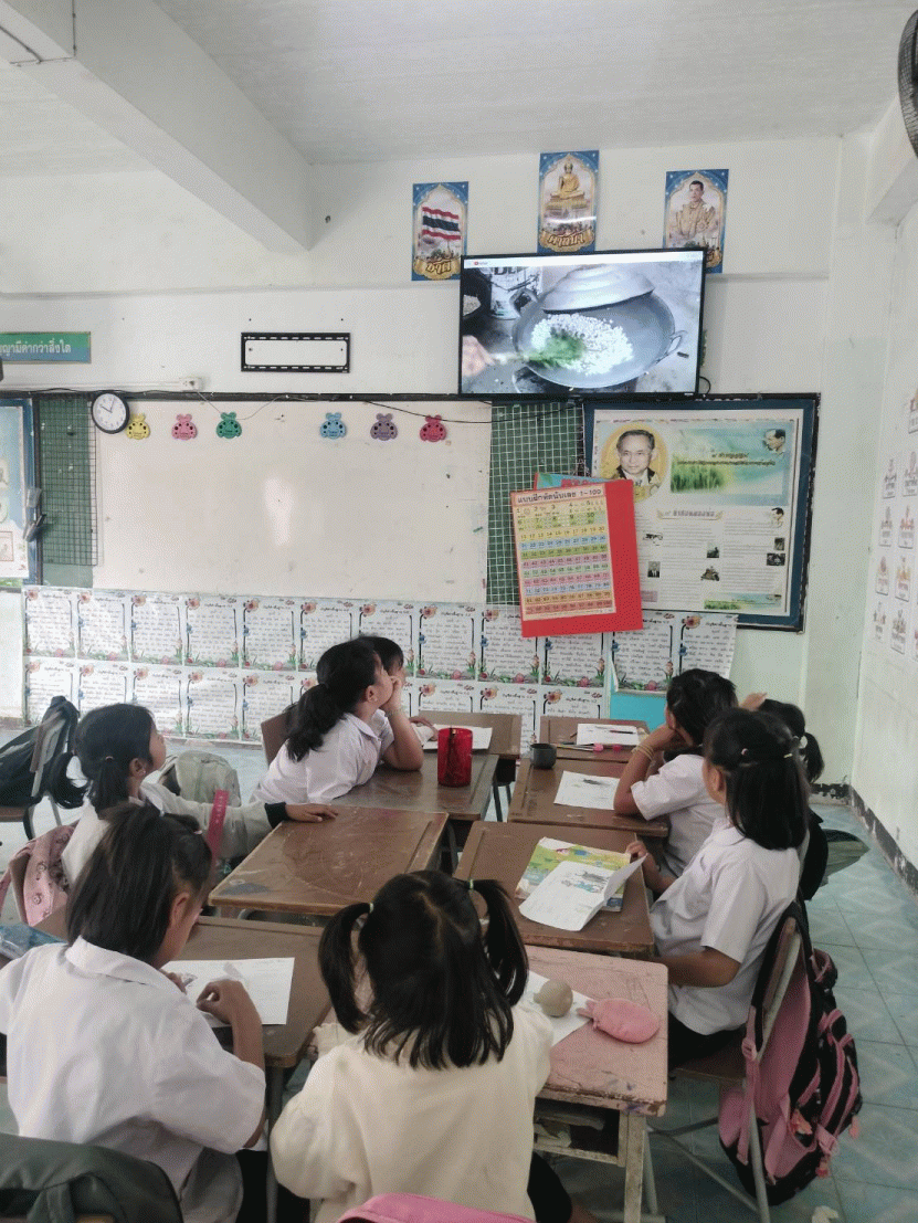 ผลลัพธ์ต่อชุมชน : นักเรียนสามารถเรียนรู้ประเพณีวัฒนธรรมท้องถิ่นและสามารถใช้ทักษะในการสื่อสารในเรื่องของข้าวตอกได้