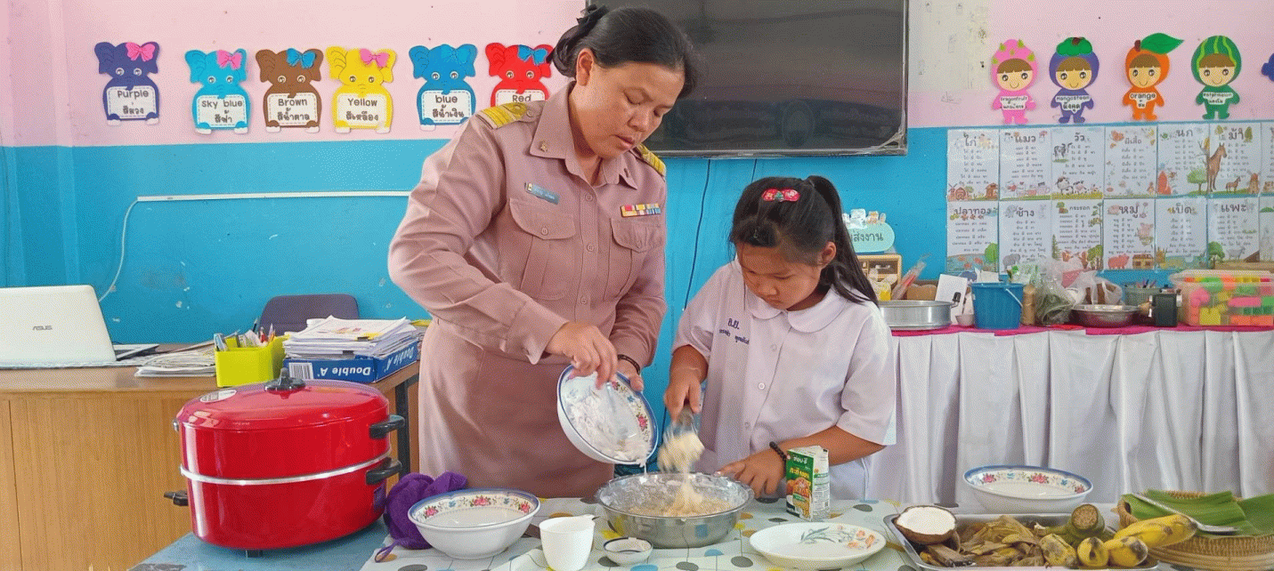 ผลลัพธ์ต่อชุมชน : ชุมชนมีส่วนร่วมกับกิจกรรมของโรงเรียน เช่น การใช้วัตถุดิบในท้องถิ่น และการถ่ายทอดภูมิปัญญาท้องถิ่น ส่งผลให้เกิดความร่วมมือ และความภาคภูมิใจในท้องถิ่นมากขึ้น