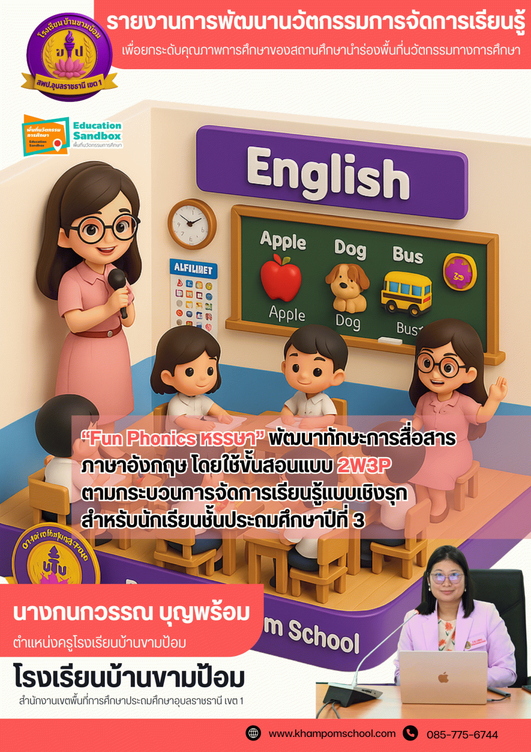 “Fun Phonics หรรษา” พัฒนาทักษะการสื่อสารภาษาอังกฤษ โดยใช้ขั้นสอนแบบ 2W3P ตามกระบวนการจัดการเรียนรู้แบบเชิงรุก (Active Learning) สำหรับนักเรียนชั้นประถมศึกษาปีที่ 3