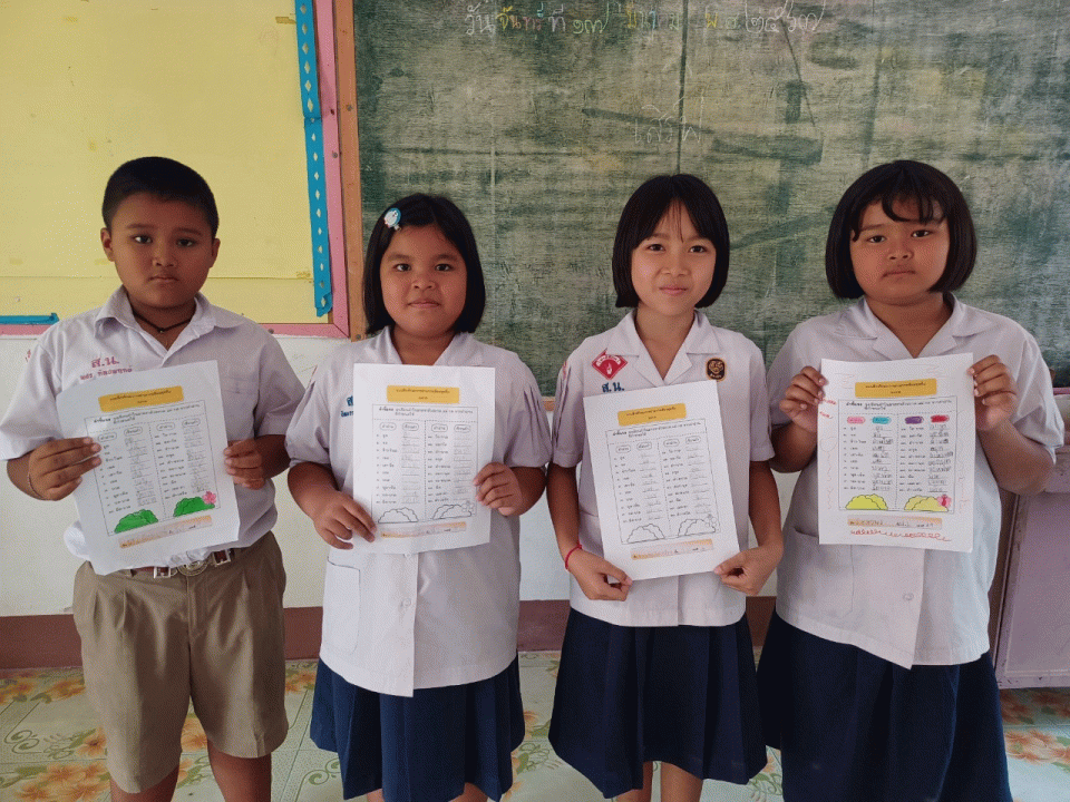 3. นำเสนอผลงานหรือสื่อการสอนแสดงสื่อการสอนที่สร้างขึ้น เช่น บัตรคำ สื่อ PowerPoint หรือคลิปวิดีโอ