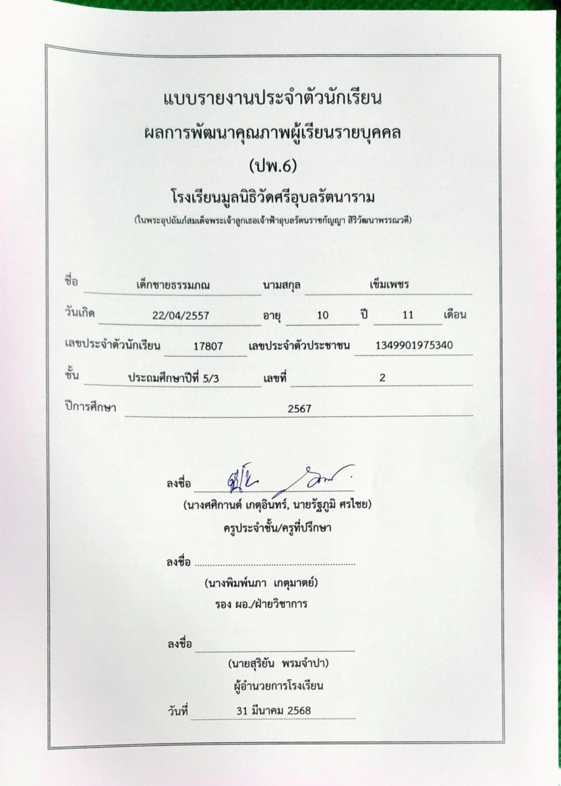รายงานนวัตกรรมศึกษาโรงเรียนมูลนิธิวัดศรีอุบลรัตนาราม (ในพระอุปถัมภ์สมเด็จพระเจ้าลูกเธอเจ้าฟ้าอุบลรัตนราชกัญญา สิริวัฒนาพรรณวดี) เรื่อง โครงการการพัฒนานวัตกรรมทางการศึกษาเพื่อพัฒนาการเรียนรู้ของเด็กปฐมวัยและยกระดับผลสัมฤทธิ์ทางการเรียนของนักเรียนระดับชั้นประถมศึกษาปีที่ 1-6 โรงเรียนมูลนิธิวัดศรีอุบลรัตนาราม