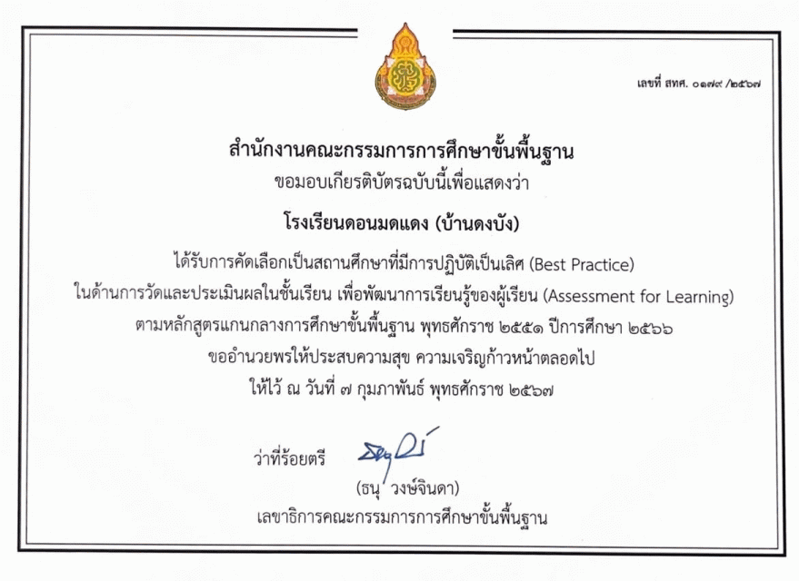 โรงเรียนดอนมดแดง(บ้านดงบัง) เสาะแสวงหาแนวทางในการแก้ปัญหาการจัดการเรียนการสอน เพื่อนำมาประยุกต์ให้สอดคล้องกับบริบทของผู้เรียน โดยฝ่ายวิชาการได้พัฒนา DMD-A AL MODEL และจัดการเรียนการสอนแบบ Active Learning พร้อมทั้งสังเกตพฤติกรรมของนักเรียน กิจกรรมที่นักเรียนชอบทำในเวลาว่าง และความสนใจของนักเรียนในช่วงวัยนี้ เพื่อพัฒนาผลสัมฤทธิ์ทางการเรียนให้เพิ่มสูงขึ้น มีเจตคติที่ดี ส่งผลให้นักเรียนมีความสุขกับการเรียนและเกิดความสนุกสนาน