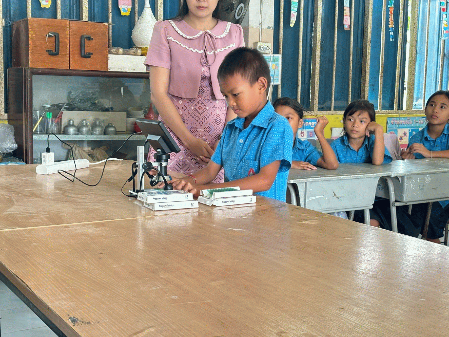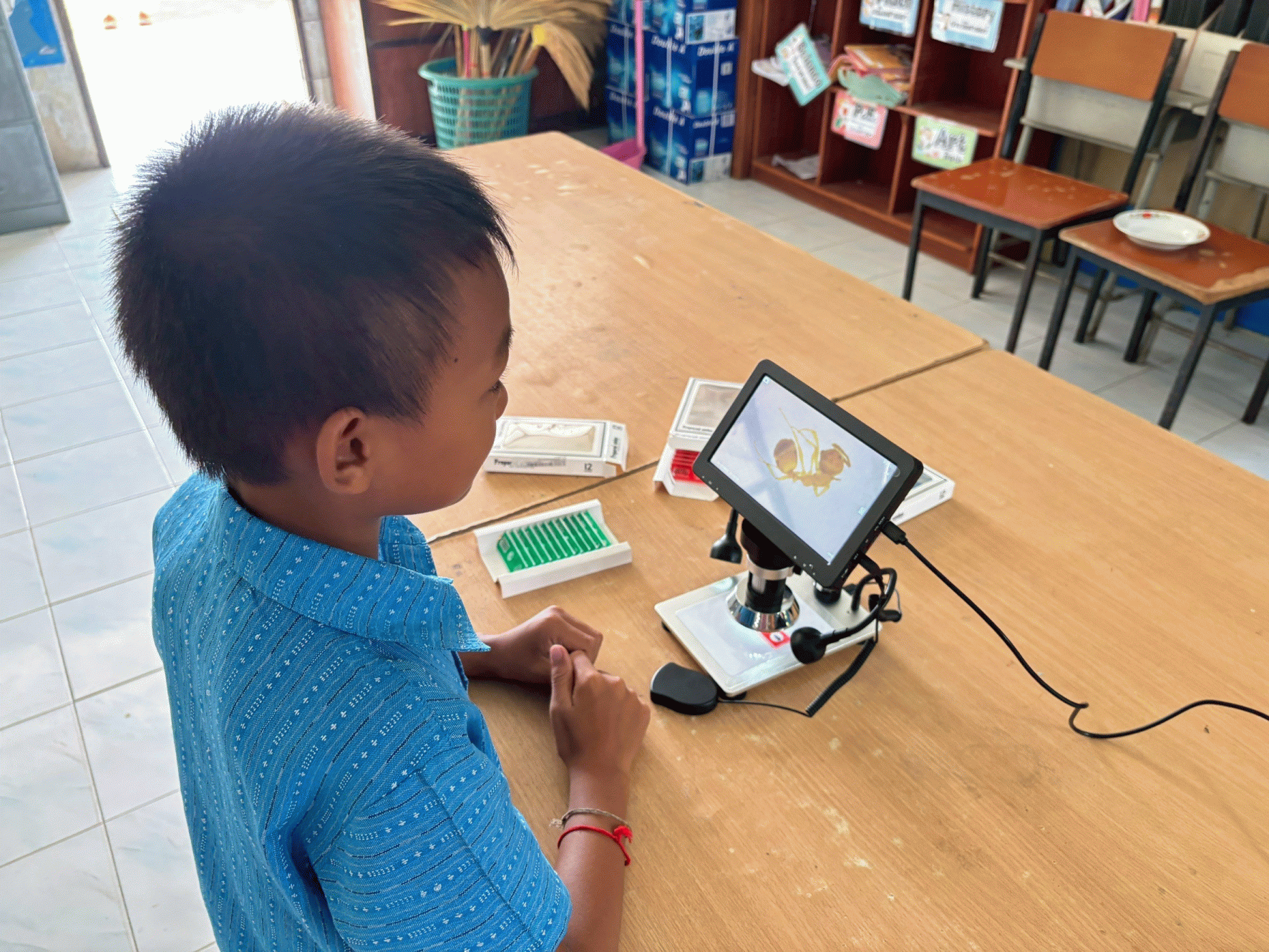 ฝึกการใช้งานกล้องจุลทรรศน์ การสังเกตวัตถุชิ้นเล็กๆ เช่น เซลล์พืช เซลล์สัตว์ แมลงตัวเล็กๆ ยุง ลูกน้ำ มด
